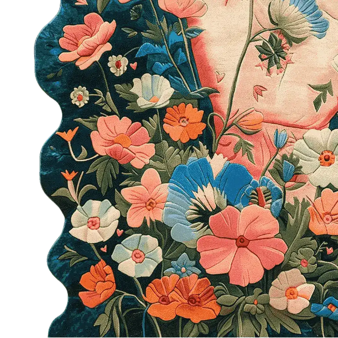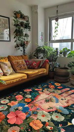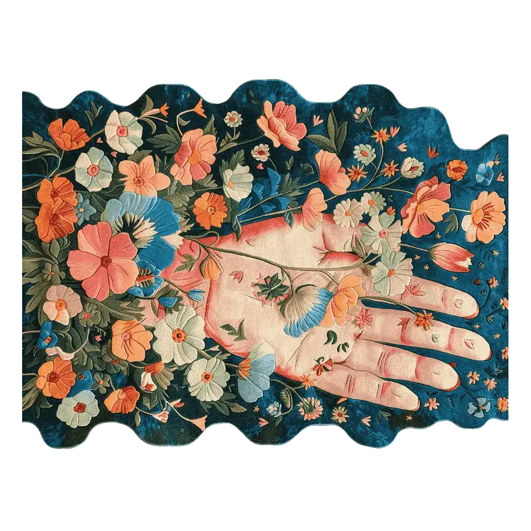 Art and nature come together in a beautiful way on this Hand of Nature Hand Tufted Rug. When you look at this piece, it makes you think of union and growth. A hand is seen coming out of a pretty flower tapestry. The background in this picture is very dark and full of detail, which makes the flowers stand out and catch your eye. There is a lot of thought that went into making this rug, and its unique wavy edges make it a real work of art. It lets you be creative and make your home look nice. The texture and warmth it adds to any room are just right.