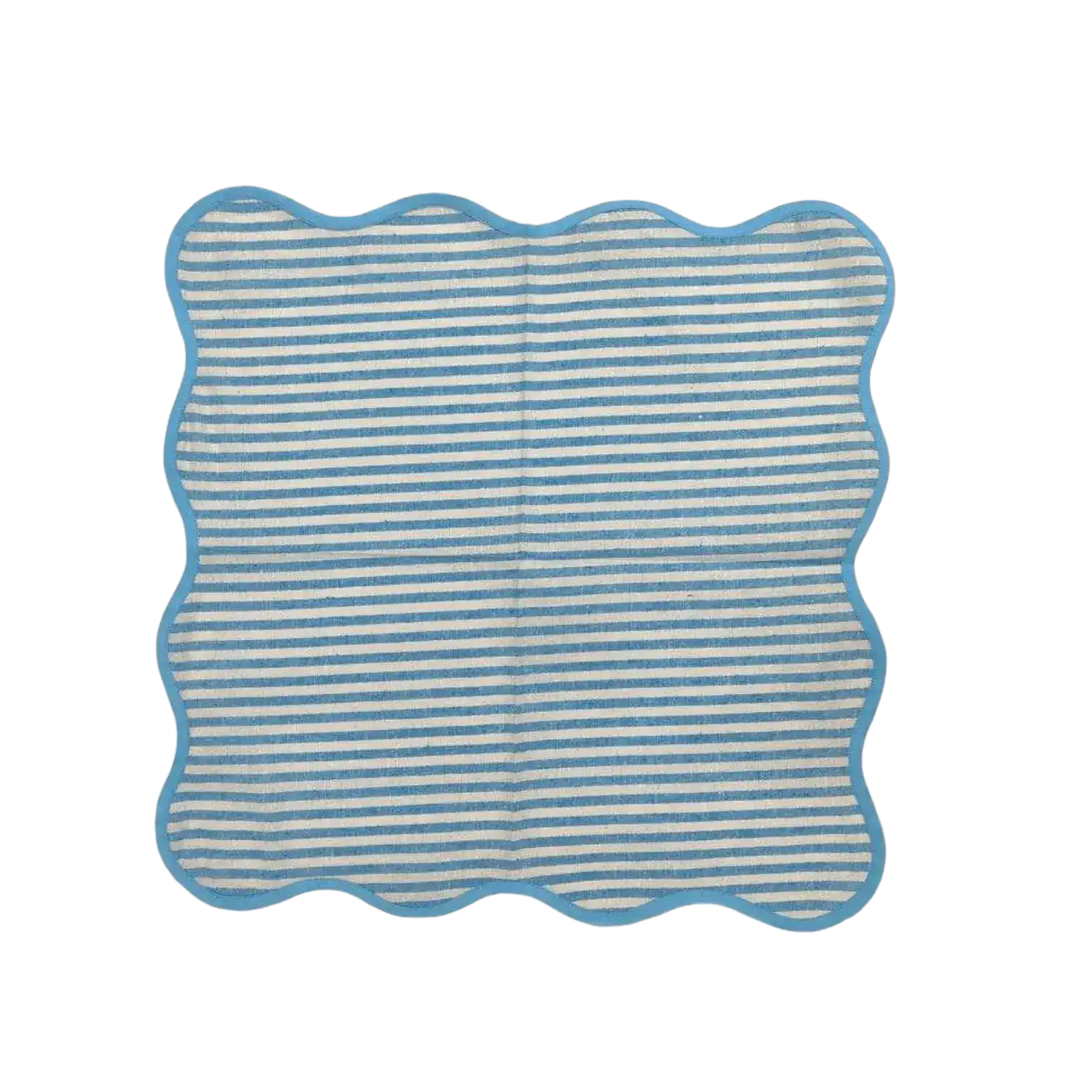 - Our Light Blue Scalloped Striped Cotton Napkins are for everyday reusable use, casual dining, or would make a lovely gift! The napkins are pre-washed, have Piping corners, and are ready for use.