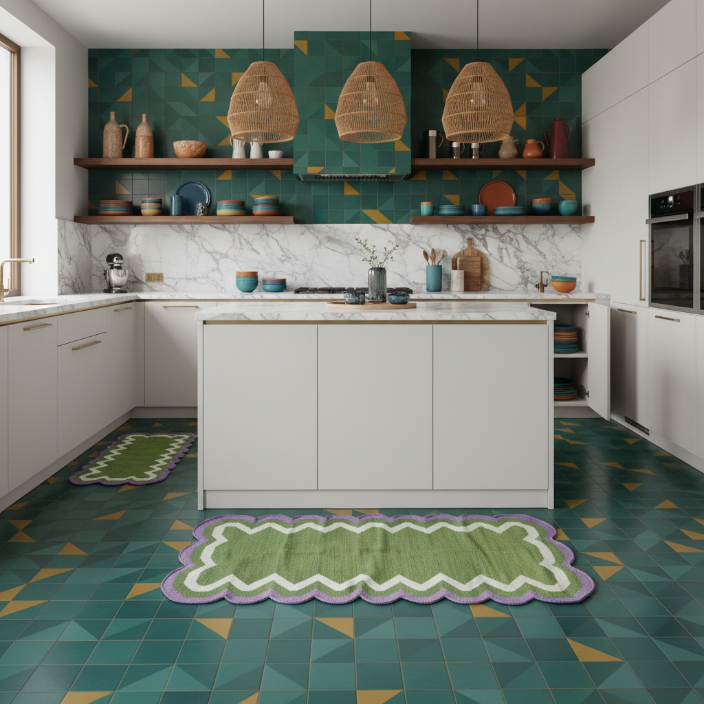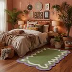 We're pleased to present our Cotton Area Rug. Beautiful! It looks so pretty when green and purple are mixed together. This mat is great for adding a touch of because it was made with a lot of care. We can help you discover a Handmade Scalloped Cotton Area Rug that will look great in your living room. It looks good and feels good, so this rug is great for any room. It's a bright mix of purple and green with a curved tip. Because it is made of cotton, it is soft and lasts a long time. It will add style and warmth to your living room, bedroom, or hallway.