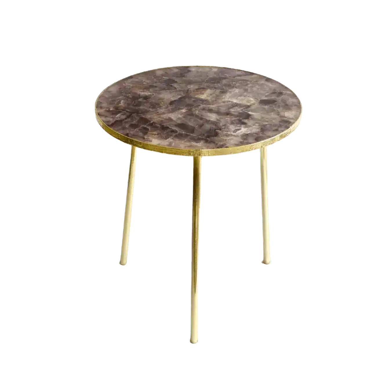 Upgrade your living space with our elegant Amethyst Round Coffee Side Table. Crafted with high-quality materials, this beautiful table adds a touch of sophistication to any room. Its unique amethyst top and sleek design make it a statement piece that's sure to impress. Order now and enjoy the perfect combination of style and function in your home."