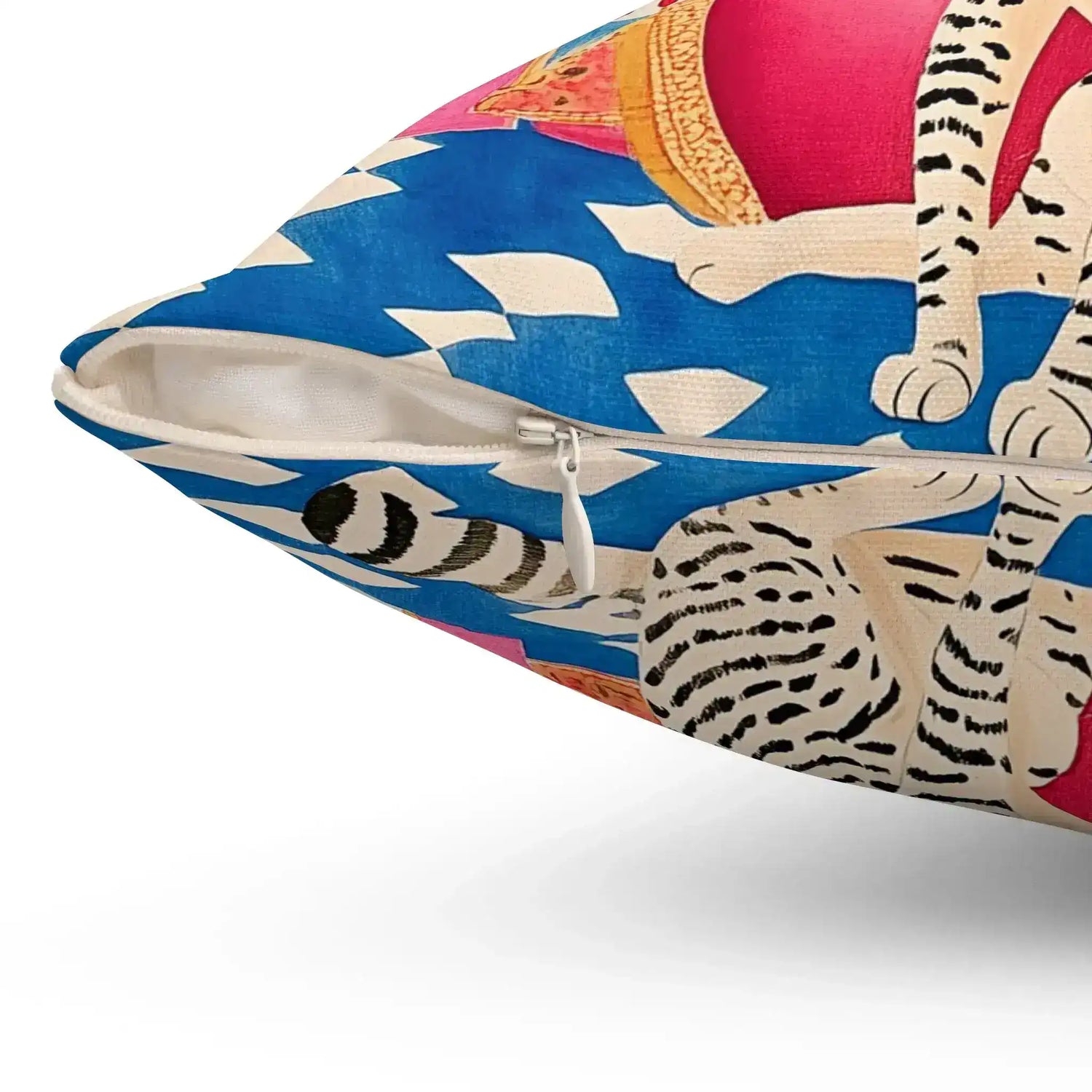 With the Jungle Animals Tiger Throw Pillow Cover with Fringes, your room will feel like a jungle. This cover has a big tiger and lots of lush plants that make your house look like it's in the middle of the jungle. Through the use of deep colors and small details, it gives the picture depth and drama. It looks like it was made by hand because of the fun fringes around the edges.