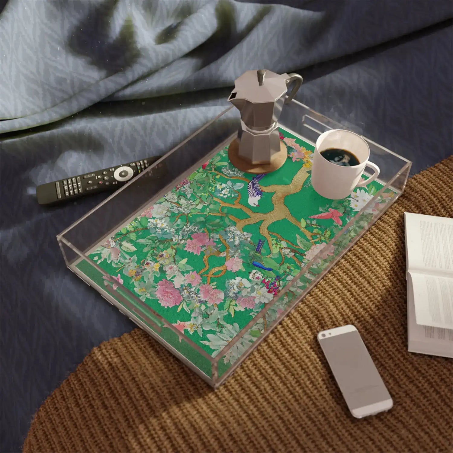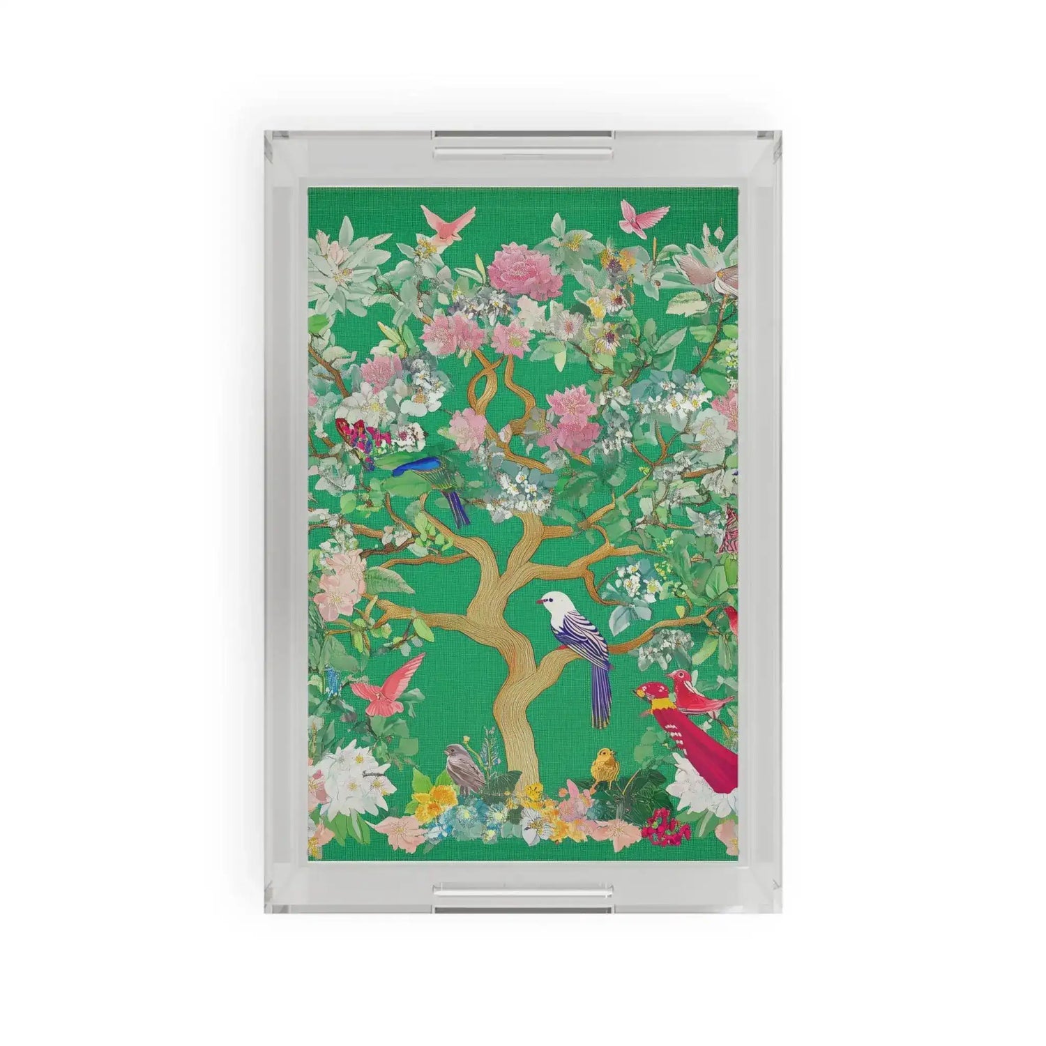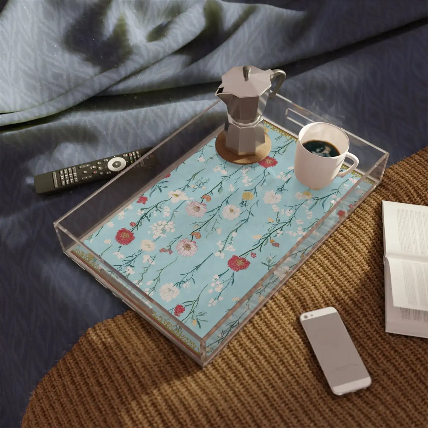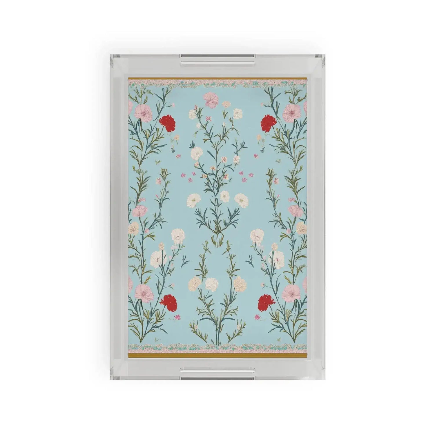 Elevate your entertaining experience with this enchanting serving tray that captures a whimsical scene of a young girl gracefully soaring on a magic carpet. Dressed in a delicate pink and white dress, her long, flowing black hair cascades behind her as she glides above a lush, flower-filled meadow. The magic carpet is intricately adorned with floral patterns and elegant fringes, adding an exotic and artistic touch to the piece. Soft hues of pastel pinks and greens create a dreamy backdrop, evoking a sense of wonder and fantasy. This serving tray isn't just a functional item—it's a work of art that brings a touch of magic and storytelling to your gatherings.