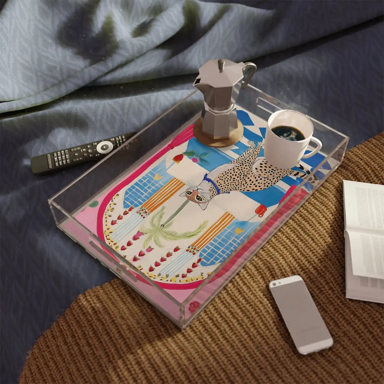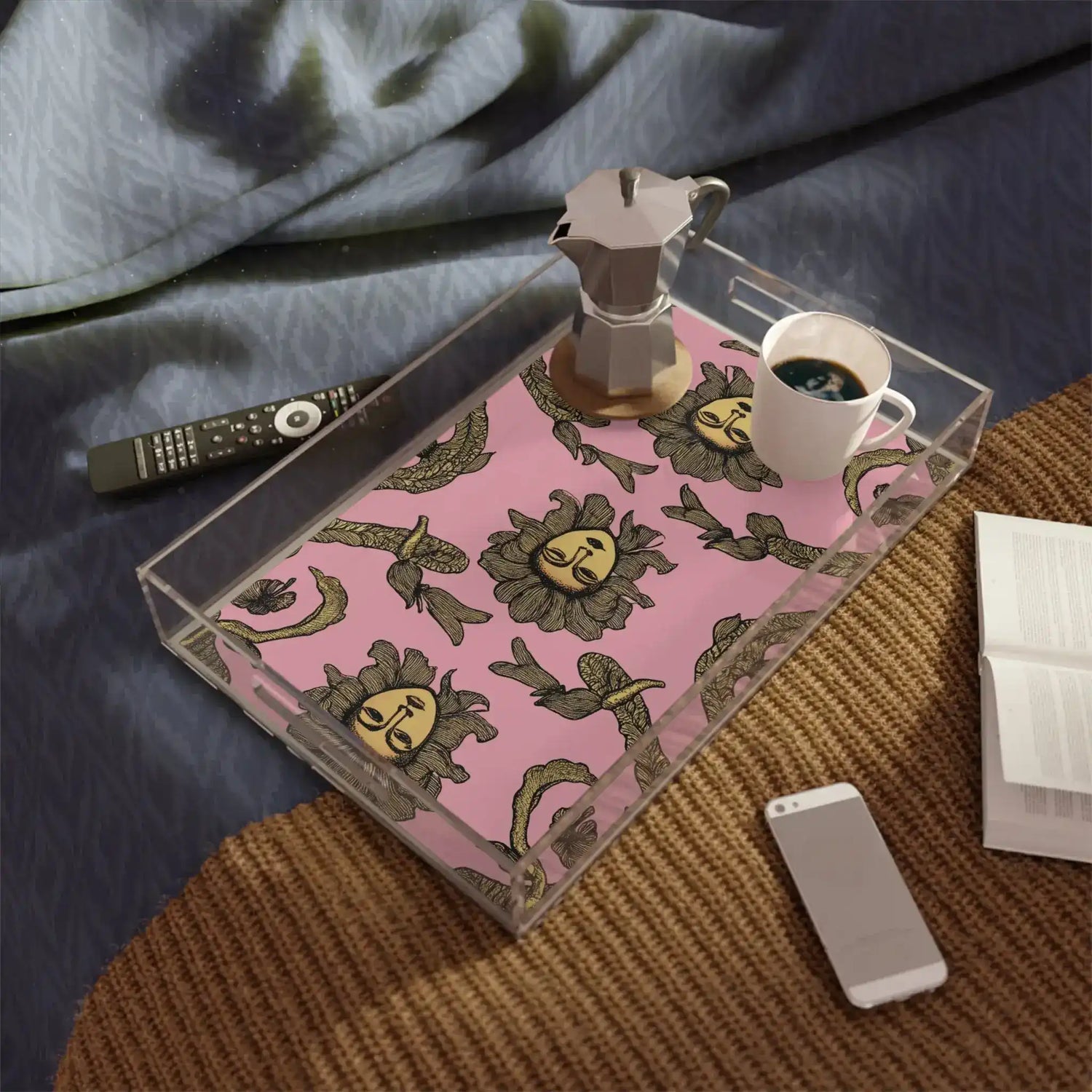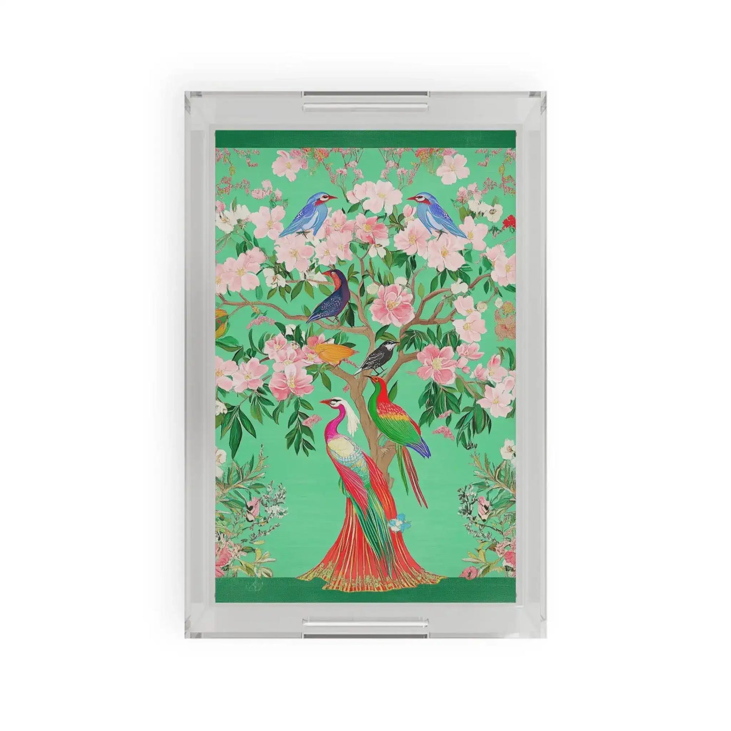 Elevate your entertaining experience with this enchanting serving tray that captures a whimsical scene of a young girl gracefully soaring on a magic carpet. Dressed in a delicate pink and white dress, her long, flowing black hair cascades behind her as she glides above a lush, flower-filled meadow. The magic carpet is intricately adorned with floral patterns and elegant fringes, adding an exotic and artistic touch to the piece. Soft hues of pastel pinks and greens create a dreamy backdrop, evoking a sense of wonder and fantasy. This serving tray isn't just a functional item—it's a work of art that brings a touch of magic and storytelling to your gatherings.