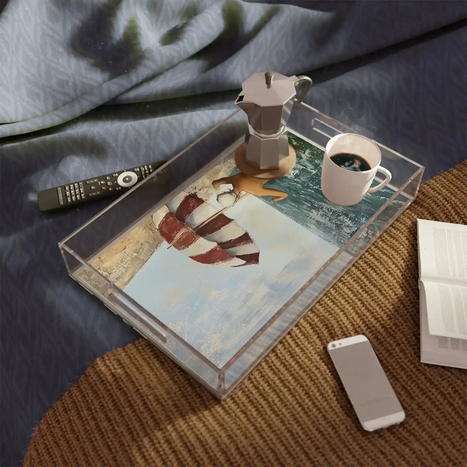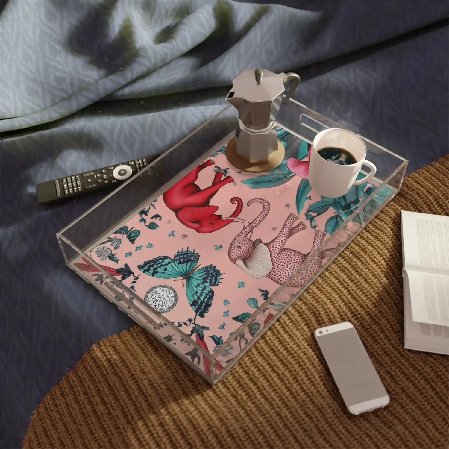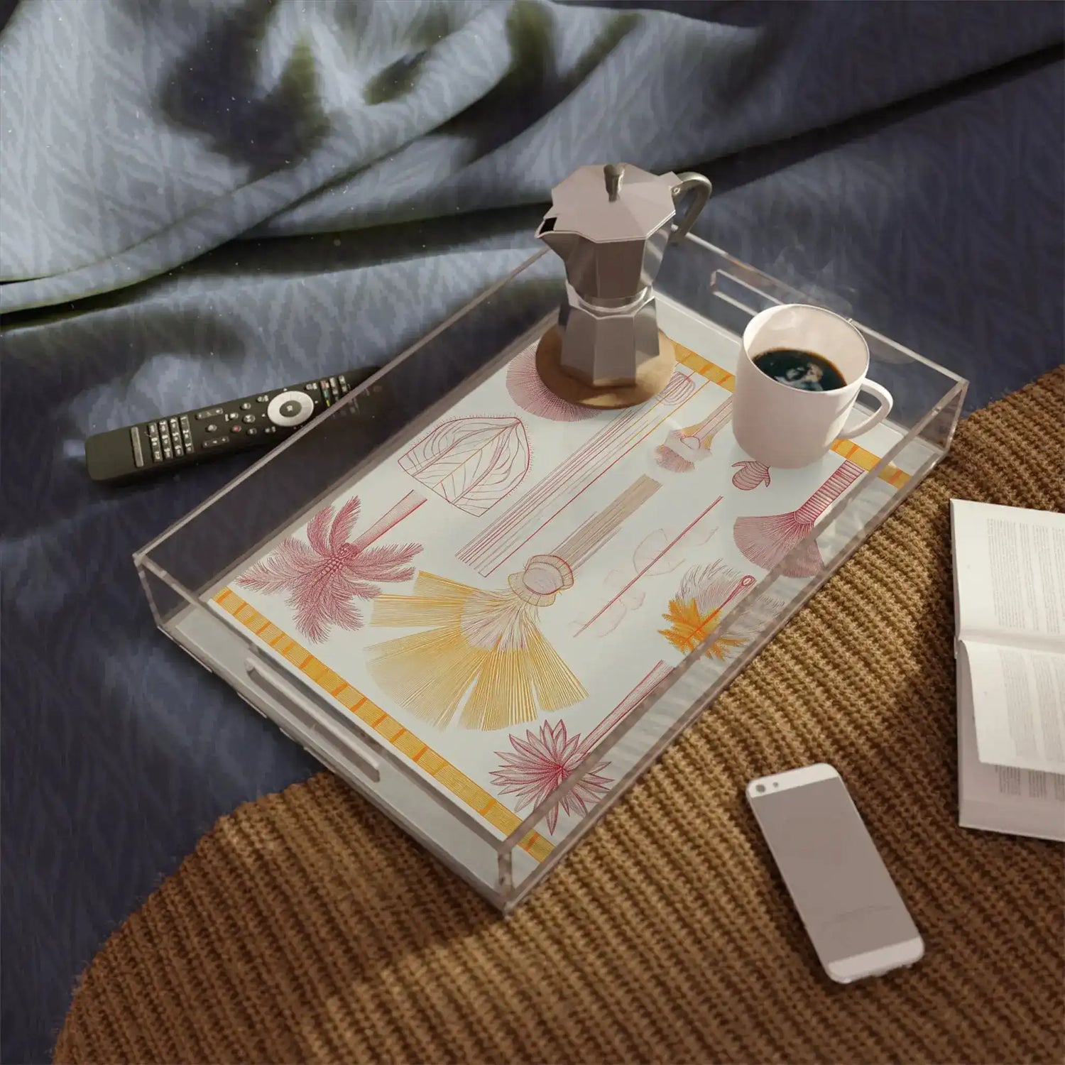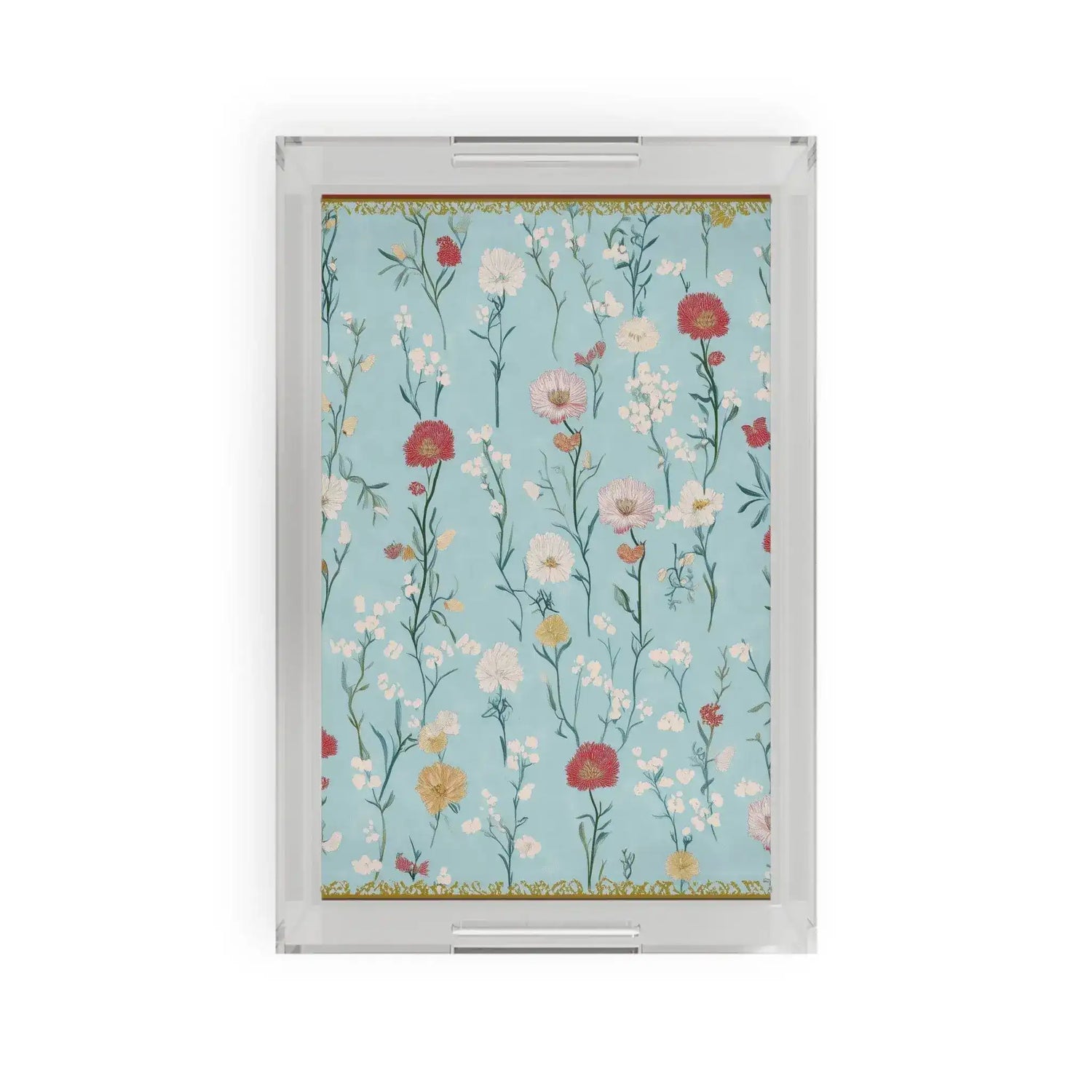 Elevate your entertaining experience with this enchanting serving tray that captures a whimsical scene of a young girl gracefully soaring on a magic carpet. Dressed in a delicate pink and white dress, her long, flowing black hair cascades behind her as she glides above a lush, flower-filled meadow. The magic carpet is intricately adorned with floral patterns and elegant fringes, adding an exotic and artistic touch to the piece. Soft hues of pastel pinks and greens create a dreamy backdrop, evoking a sense of wonder and fantasy. This serving tray isn't just a functional item—it's a work of art that brings a touch of magic and storytelling to your gatherings.