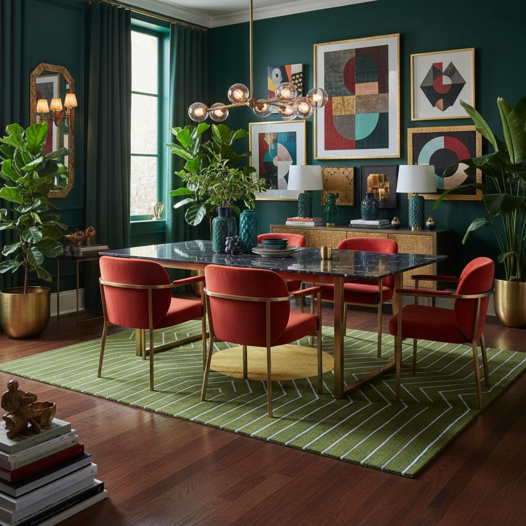 The Moss Green Gold Circle Geometric Hand Tufted Wool Rug will give your room balance and a high-class look. This beautiful pattern has concentric circles in rich moss green and shiny gold, making a lively visual rhythm that goes well with both modern and transitional rooms.