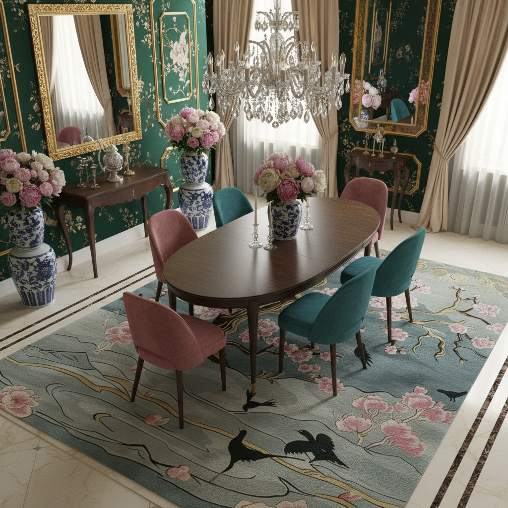 You can enjoy the beauty of nature with the Nature's Serenade Hand-Tufted Rug. It is a beautiful picture of nature. The carefully drawn scenes of trees, flowers, and birds in the air on this rug make it feel like you're in the peace and quiet of nature. Good materials were used to make it, and it feels soft and fluffy. It's comfortable, and it lasts a long time. If you put this beautiful piece in your living room, it will look wonderful. Adding a bit of natural beauty and peace to any room is easy with it.