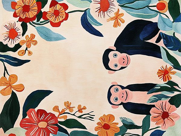 Red Twin Flowers Hand Tufted Wool Rug