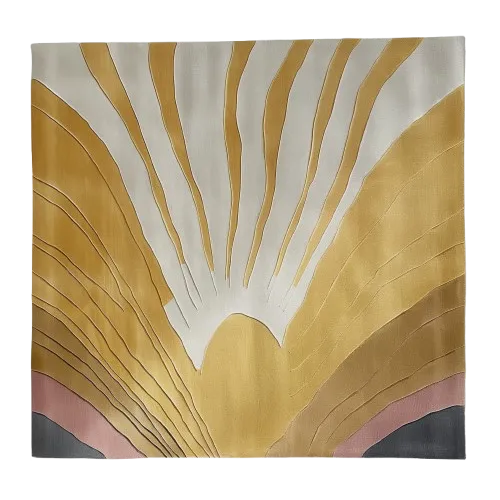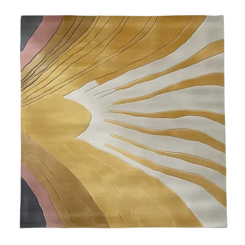 This accent rug features a bold, geometric sunburst design in black, red, and beige. The pattern radiates energy and vibrance, making it a striking addition to any room. The contrasting colors and dynamic shapes create a visually captivating piece that effortlessly enhances modern and artistic home decor.