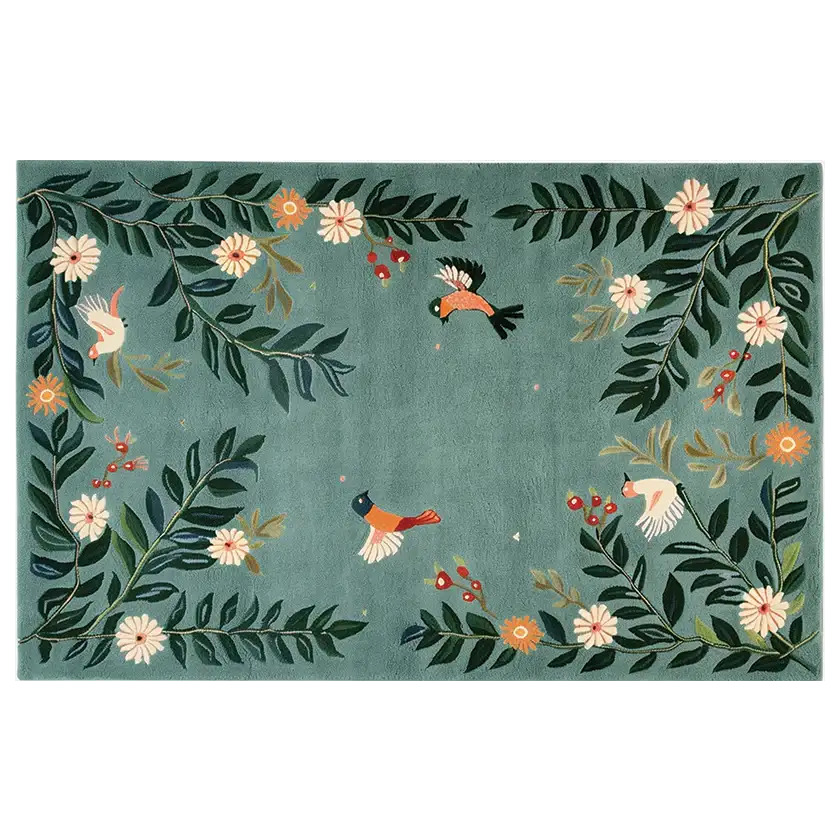 With its cute bird and flower designs, the Bird and Blossom Tapestry Hand Tufted Wool Rug really captures the soul of nature. This rug is made from high-quality wool and has a soft feel. It will last a long time and is great for any room. The bright colors and complicated patterns add a fun and fancy touch to your home decor. With this beautiful piece, you can turn any room into a peaceful haven.
