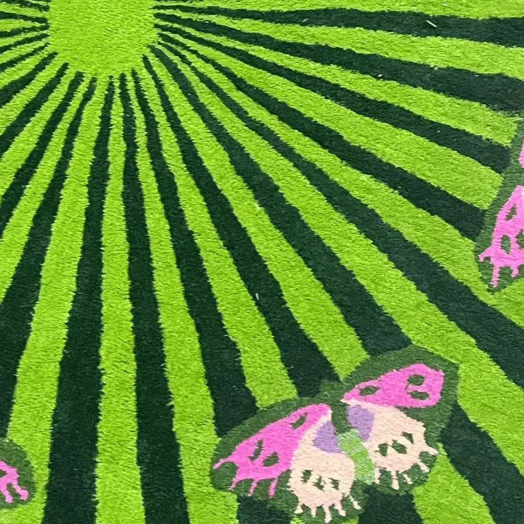If you want to add something beautiful and unique to your home, the Butterflies over Flower Hand Tufted Wool Rug in Green is a great choice. This beautiful butterfly and flower rug was made by hand from high-quality wool and will add a touch of elegance to your space. Also, the bright green color will make any room look better. Because it was hand-tufted, it will last a long time and be a great investment for your home. This rug is sure to impress because it will add warmth and texture to your floors. Butterfly over Flower Hand Tufted Wool Rug in green will bring the beauty of nature into your home.