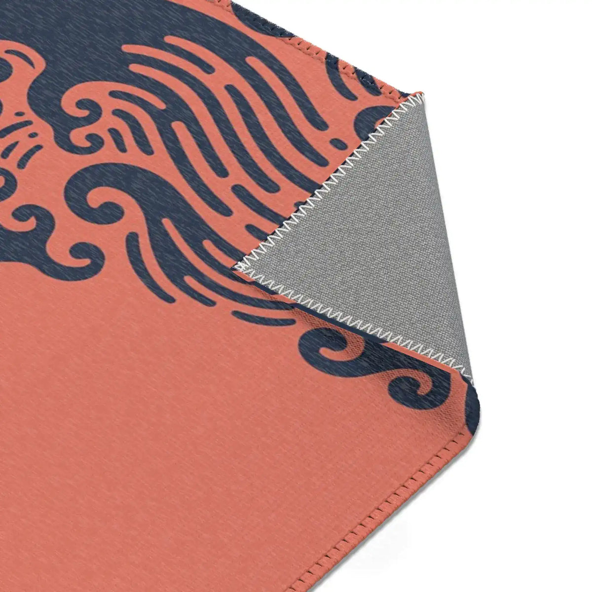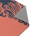 This accent rug features a bold, geometric sunburst design in black, red, and beige. The pattern radiates energy and vibrance, making it a striking addition to any room. The contrasting colors and dynamic shapes create a visually captivating piece that effortlessly enhances modern and artistic home decor.