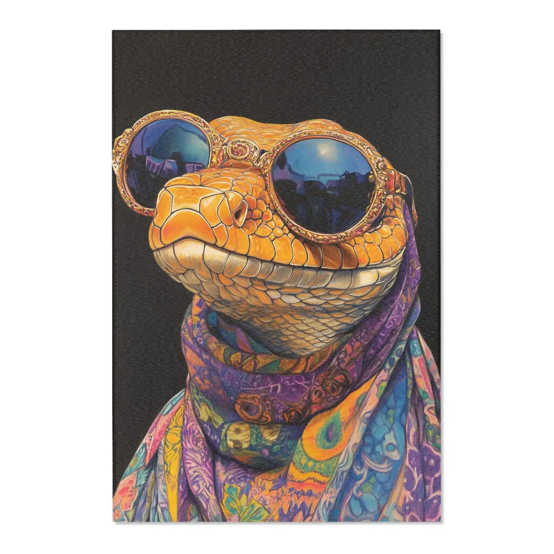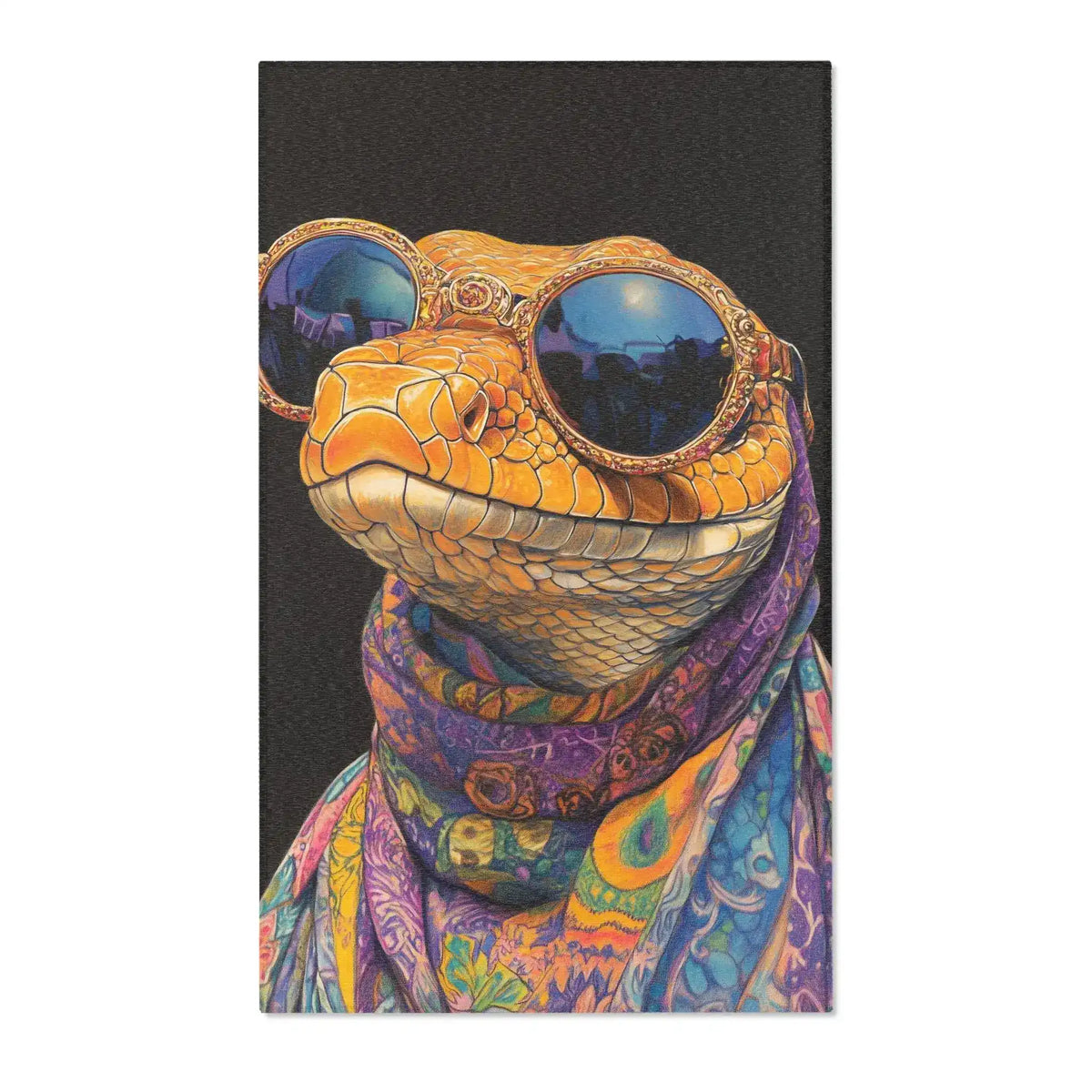 The Golden Viper Luxe Snake Accent Rug will make any room look bold and stylish. This golden snake rug is a fun way to make your room stand out. It's soft and lasts a long time. This is fun for people who like to decorate their homes in a fun way.