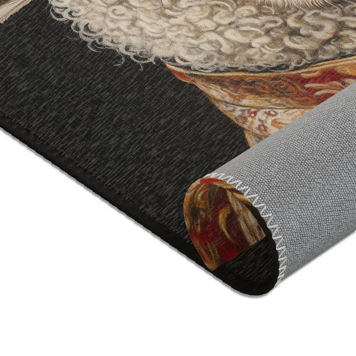The Lord of the Flock Regal Sheep Accent Rug adds a royal touch with a fun twist. It's a soft, charming accent that gives any room personality. It has a sheep dressed in a noble way.
