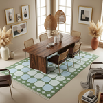 It is made by hand from pure cotton and colored with natural plant-based dyes. It gives your home a touch of eco-friendly style. Because it is flatweave, it can be used on both sides, so it is flexible and lasts a long time. The green diamond pattern makes it look fresh and natural.