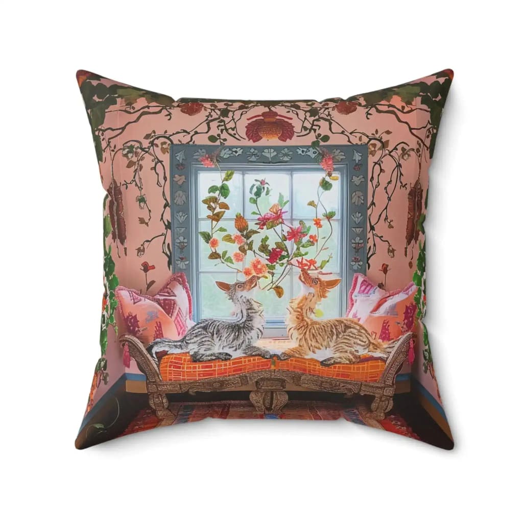 We can make any space feel like a dream with the Whimsy Garden Lounge Throw Pillow. This pillow brings a fresh, fun vibe to your space with its painterly textures, soft colors that look like they came from a garden, and fun flowers. It's a celebration of how carefree, colorful, and always welcoming nature is.