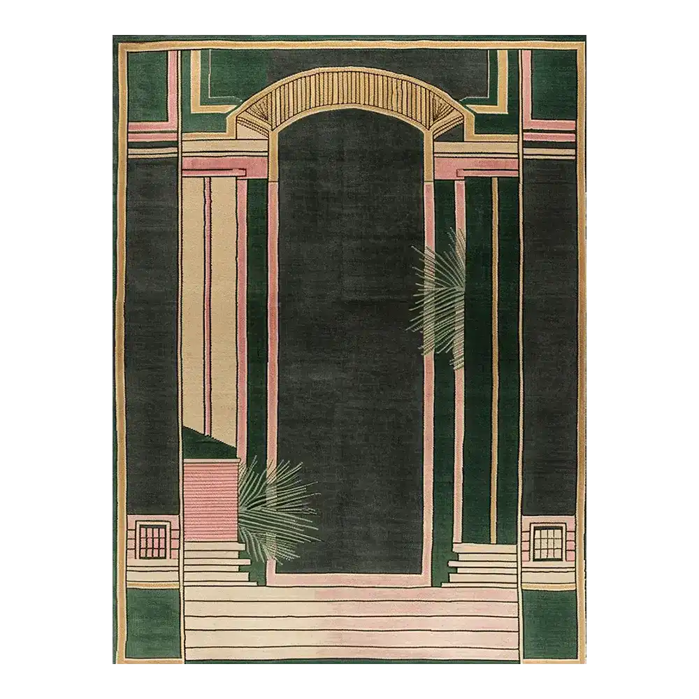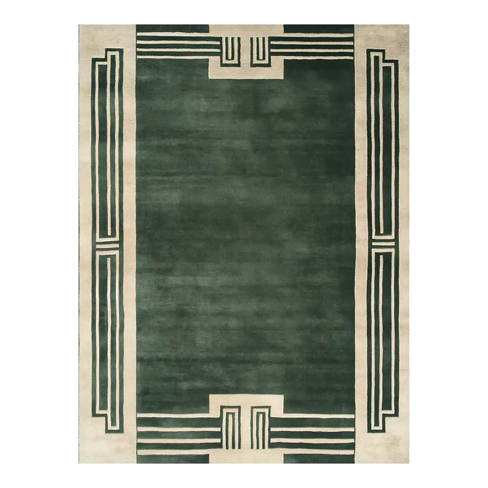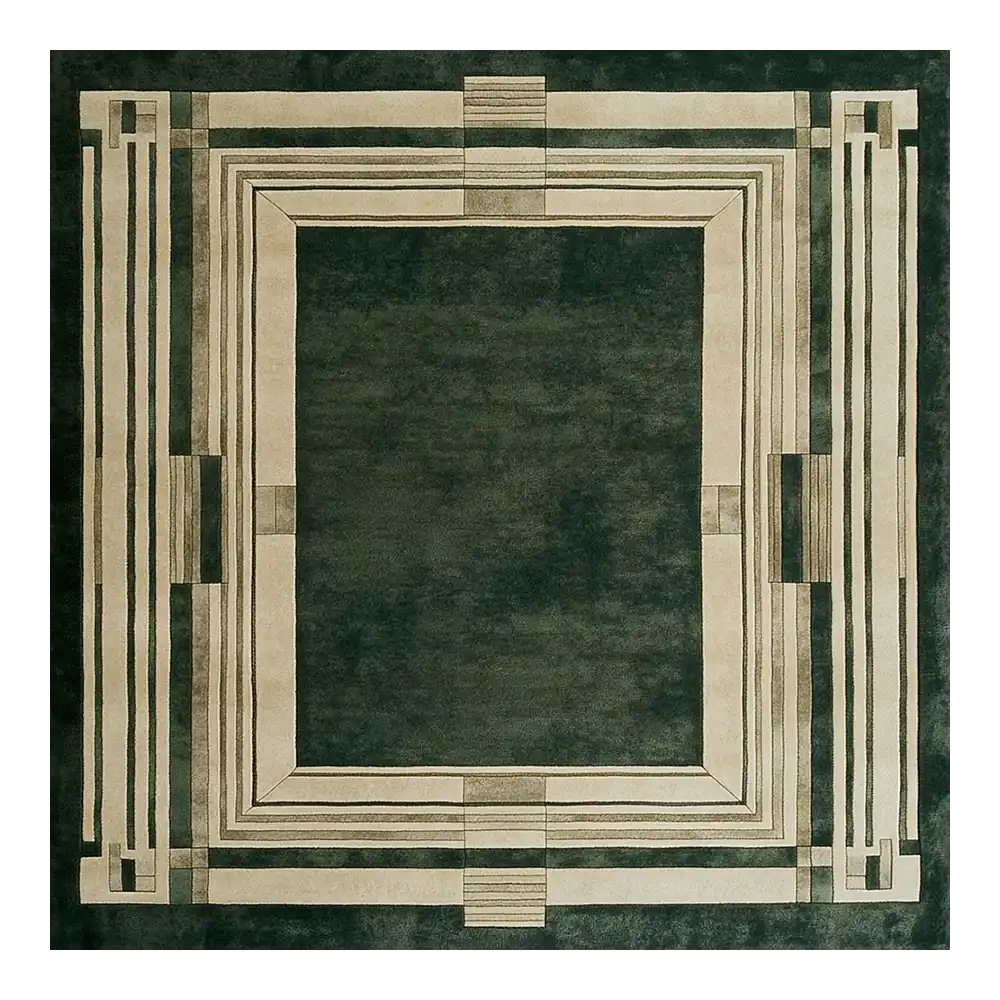 A stunning round area rug featuring a bold snake design against a rich green backdrop, perfect for enhancing any dining room. This wool rug combines luxury and style, making it an ideal choice for large area and formal dining room settings.