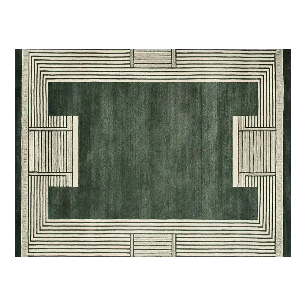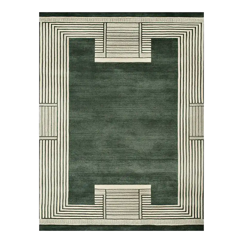 Snake and Sun Hand Tufted Wool Rug - Moss Green II