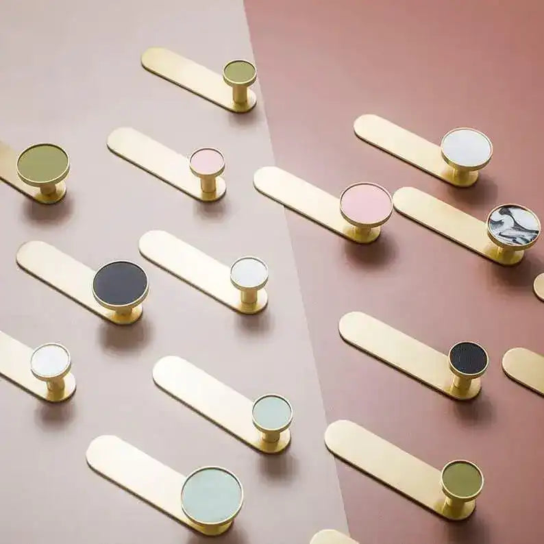 - This agate handle with brass hardware will add an elegant pop of color to your cupboards, cabinets, and drawers.