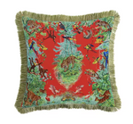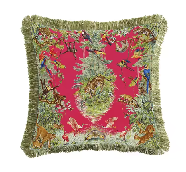 With the Jungle Animals Tiger Throw Pillow Cover with Fringes, your room will feel like a jungle. This cover has a big tiger and lots of lush plants that make your house look like it's in the middle of the jungle. Through the use of deep colors and small details, it gives the picture depth and drama. It looks like it was made by hand because of the fun fringes around the edges.
