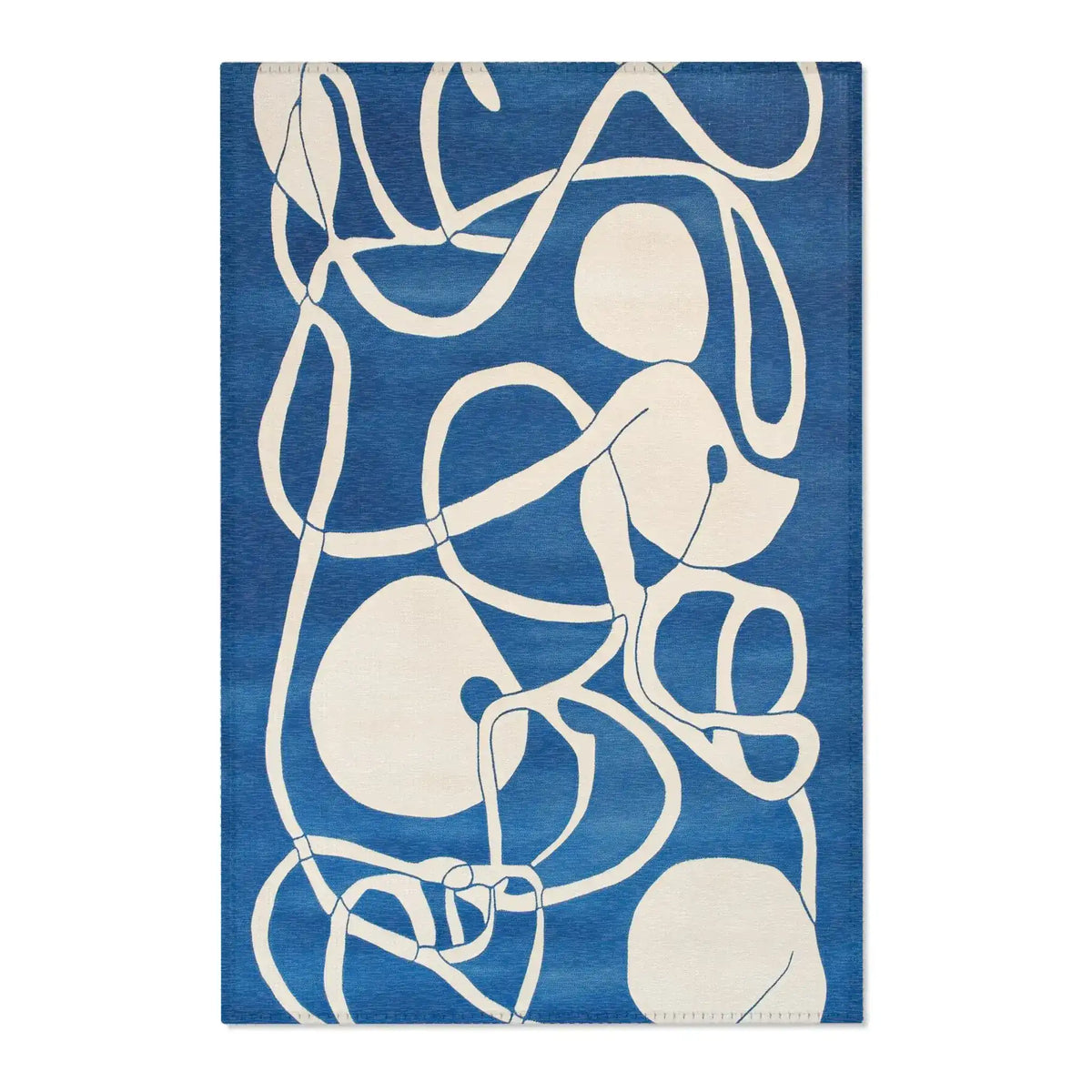 Ocean Flow Abstract Blue and White Rug