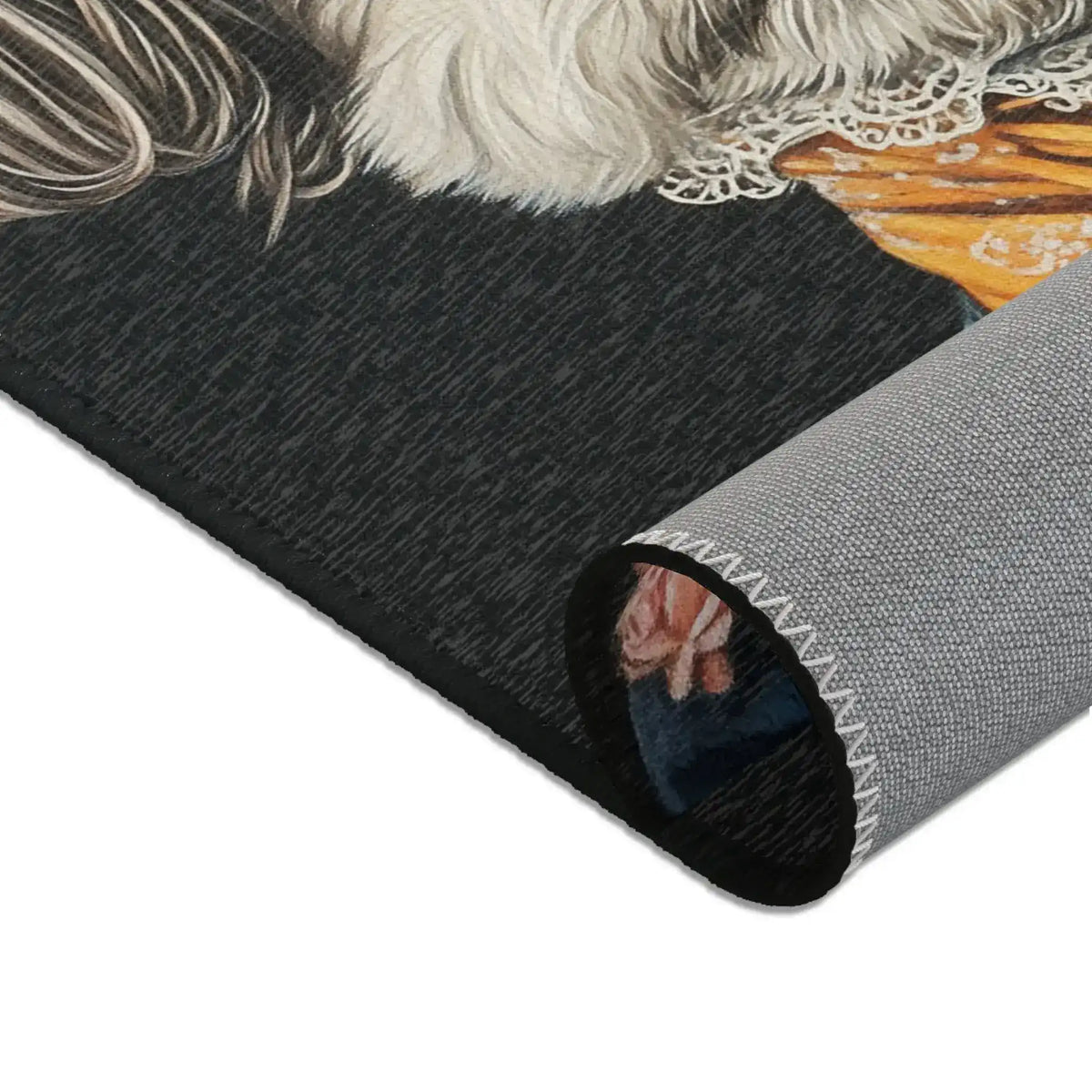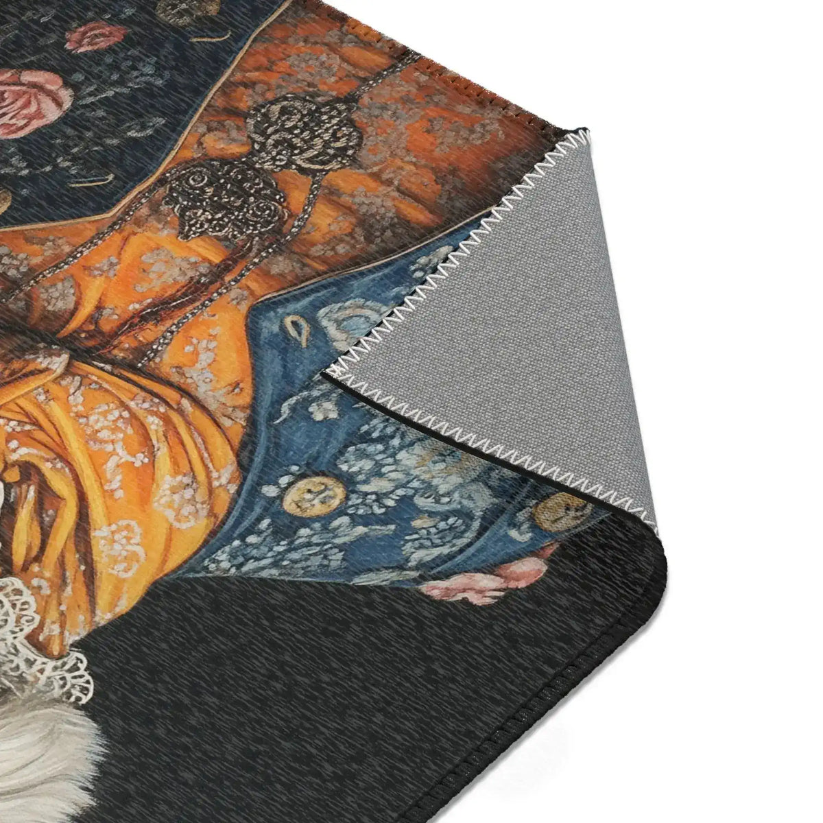The Regal Renaissance Pup Couture Accent Rug will make your room look fun and royal. This rug is a fun mix of traditional art and modern style because it has a cute dog dressed up in Renaissance clothes. A piece can make a room feel cozy, funny, and royal as long as it's soft, strong, and has its own style.