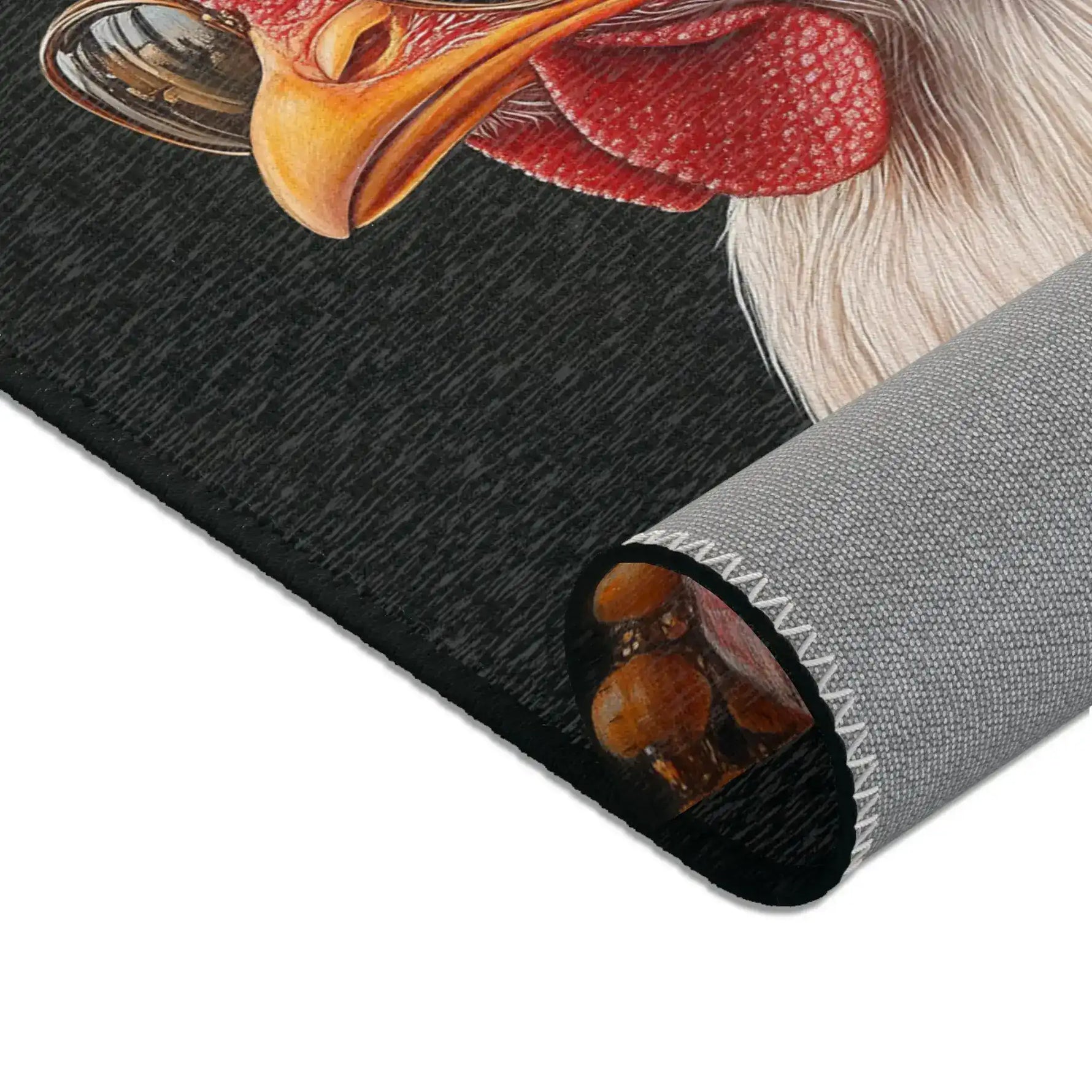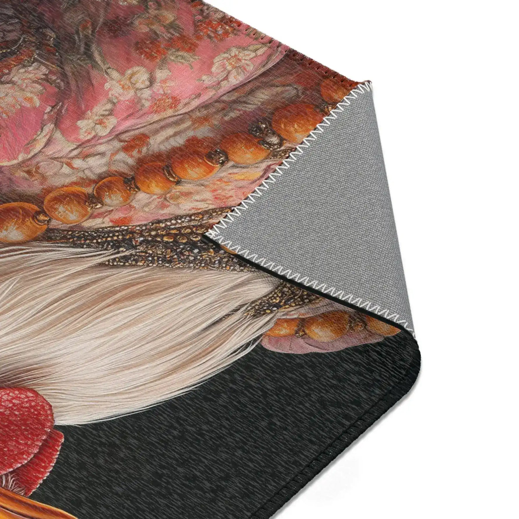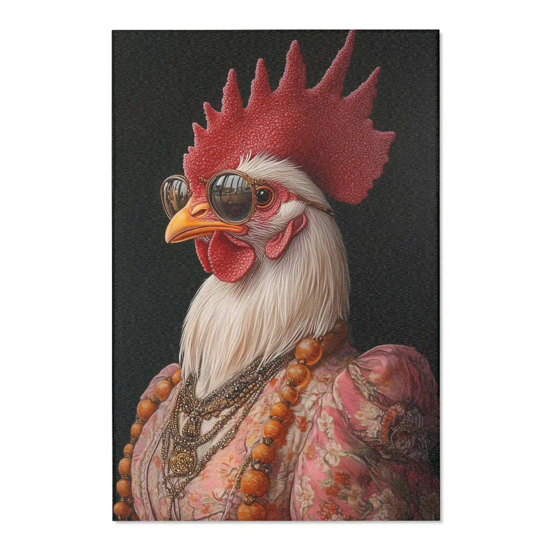 The Renaissance Rooster Couture Rug will make your place look better. In a way, it's both classic and country-style. With its royal rooster dressed up in Renaissance clothes, it's both funny and classy. It looks great, feels good, and lasts a long time.