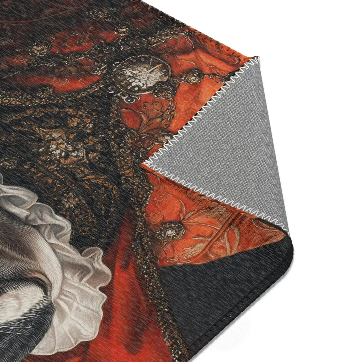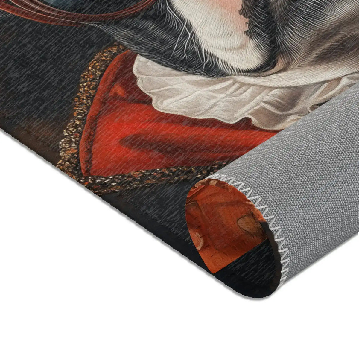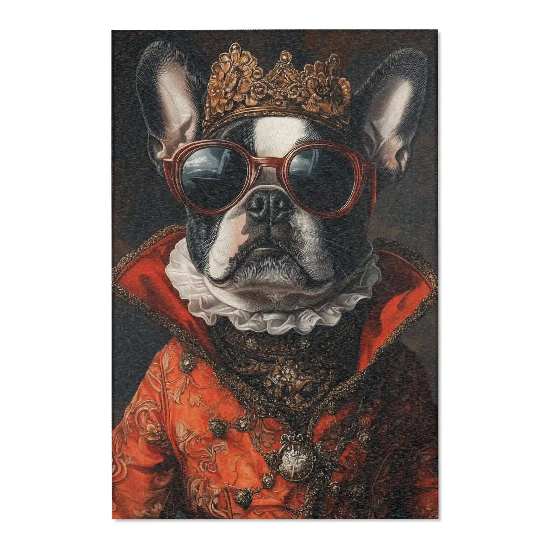 The Royal Canine Majesty Accent Rug will make your room look better and be more fun. This rug is fancy and cute because it has a picture of a noble dog dressed in royal clothes. Adding this one-of-a-kind piece of art to any room makes it feel more royal and special.