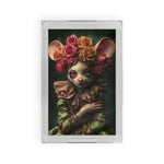 Elevate your entertaining experience with this enchanting serving tray that captures a whimsical scene of a young girl gracefully soaring on a magic carpet. Dressed in a delicate pink and white dress, her long, flowing black hair cascades behind her as she glides above a lush, flower-filled meadow. The magic carpet is intricately adorned with floral patterns and elegant fringes, adding an exotic and artistic touch to the piece. Soft hues of pastel pinks and greens create a dreamy backdrop, evoking a sense of wonder and fantasy. This serving tray isn't just a functional item—it's a work of art that brings a touch of magic and storytelling to your gatherings.