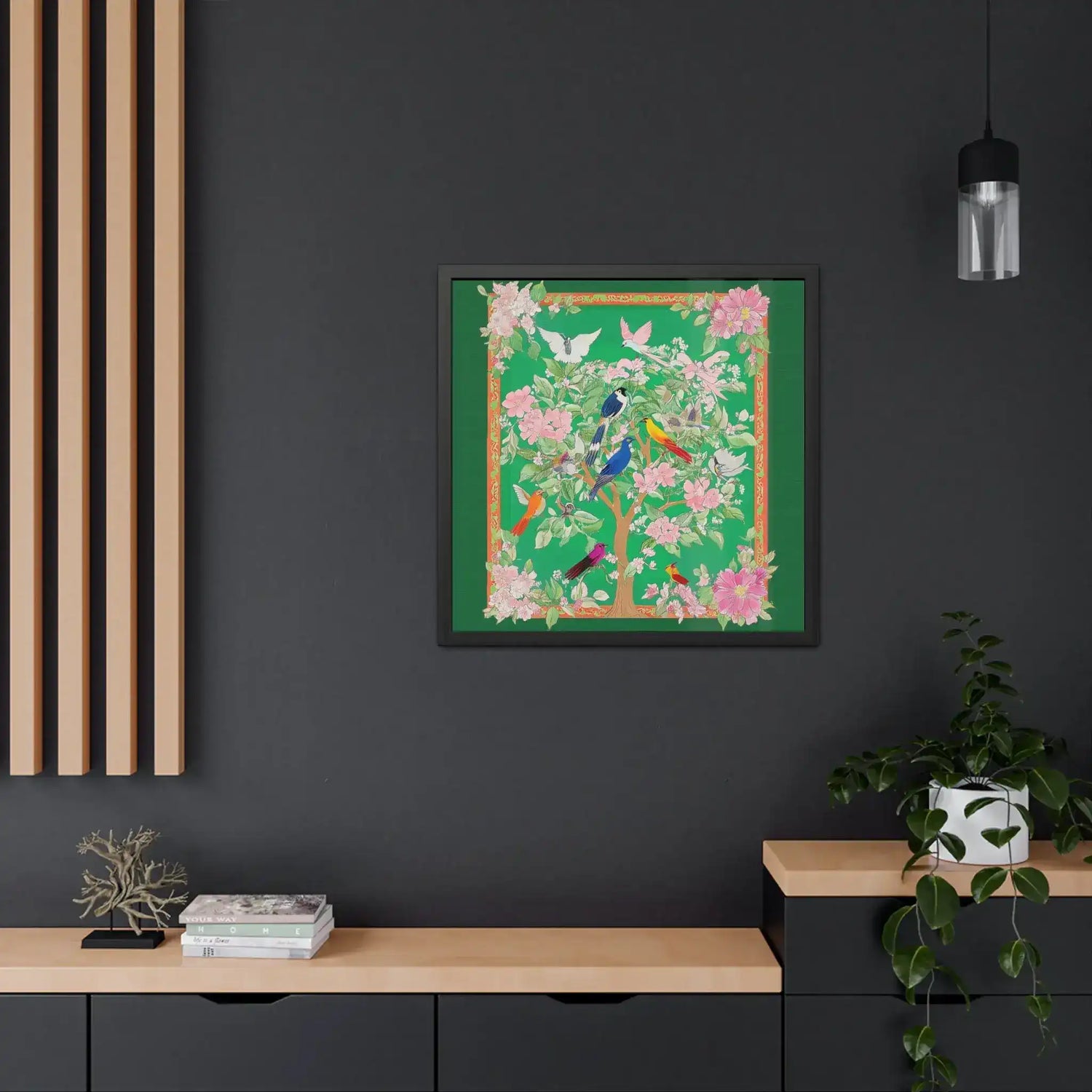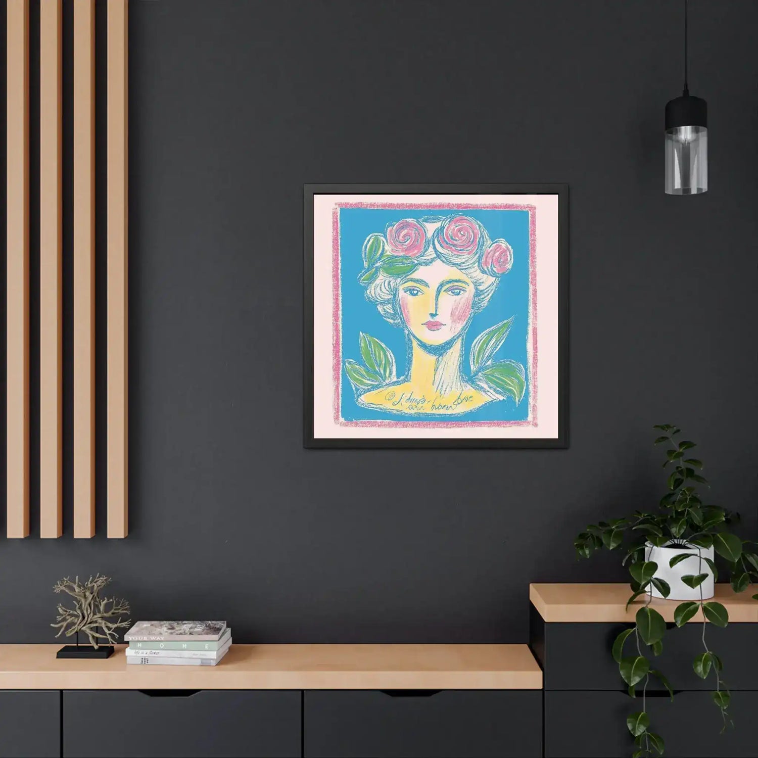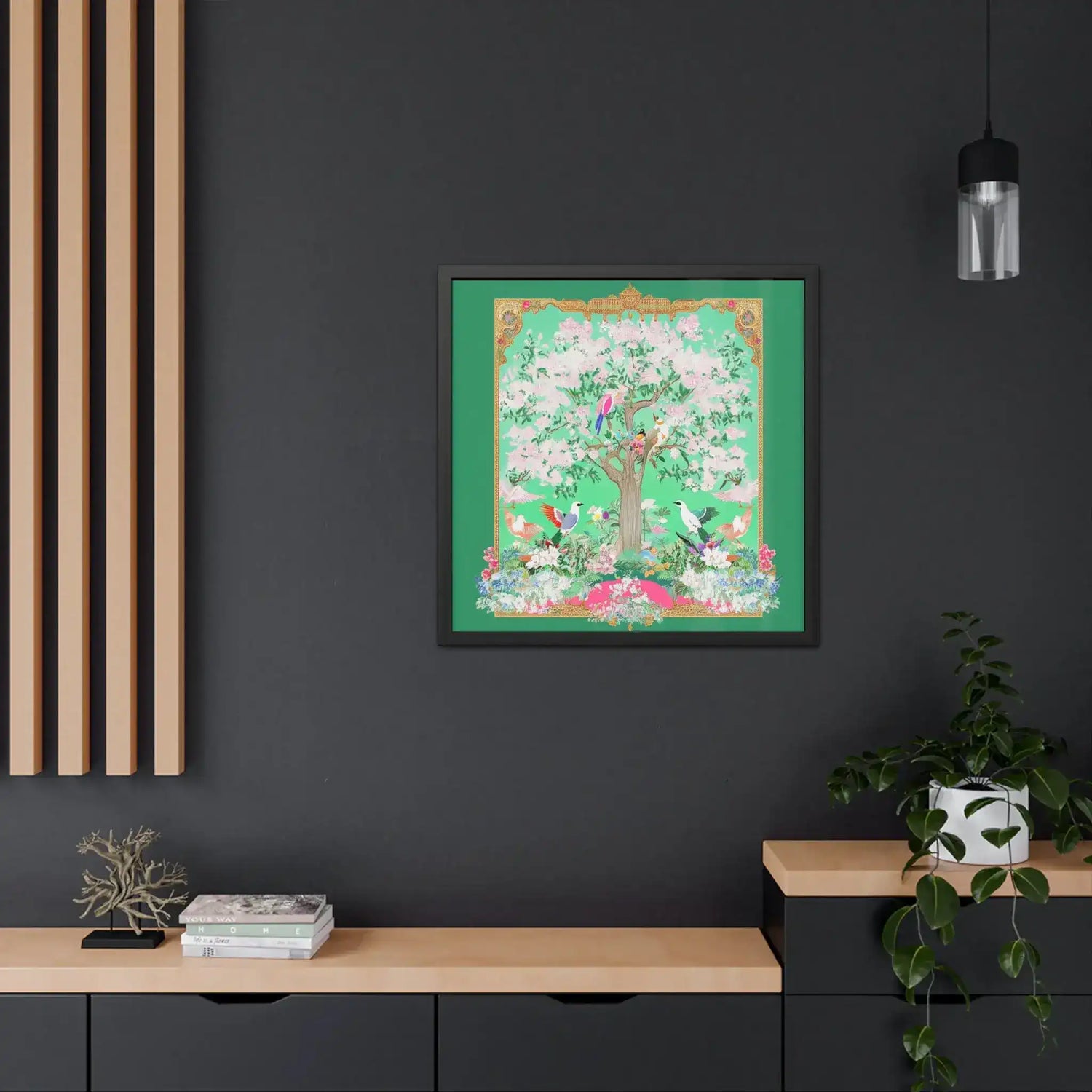 - Hand-crafted wooden frame