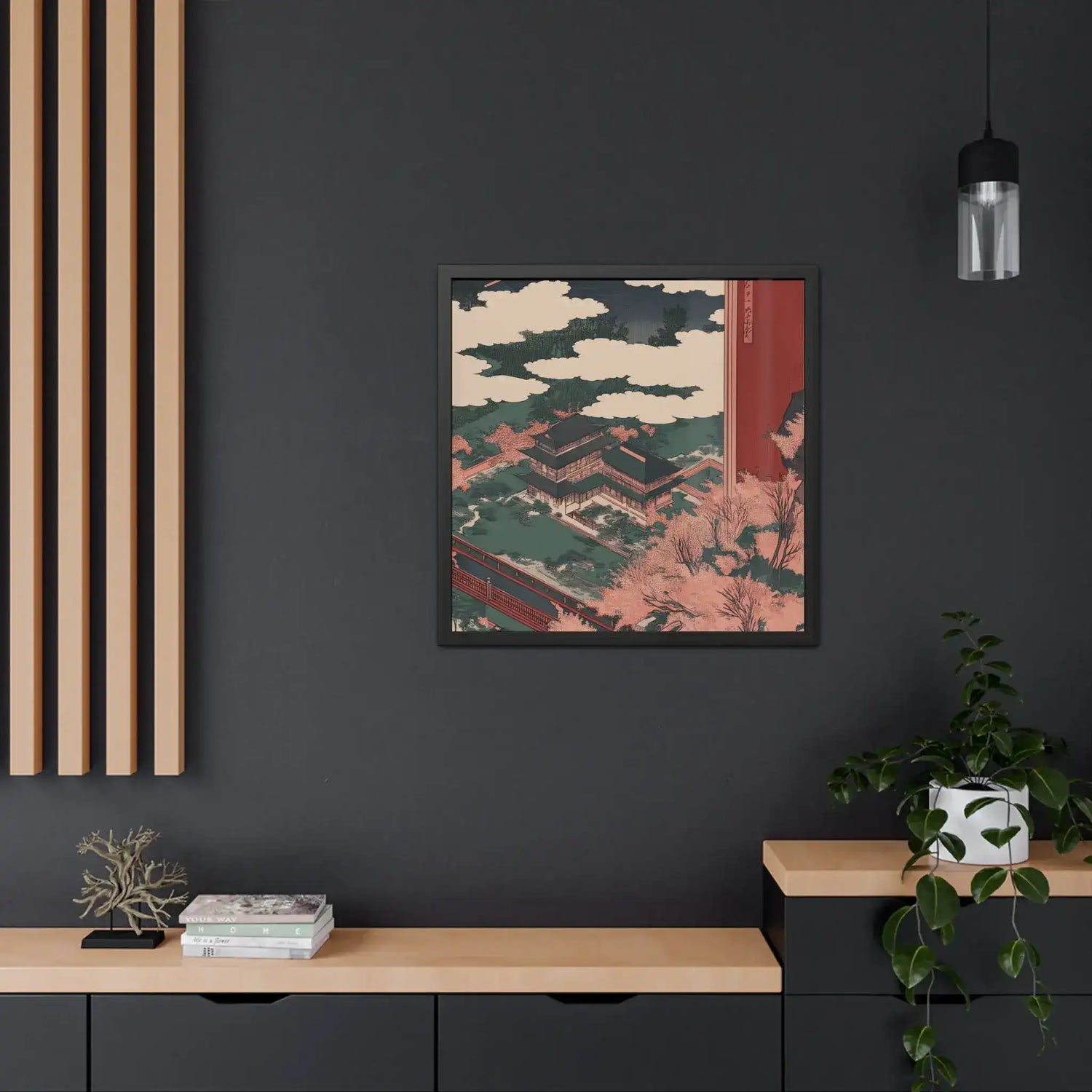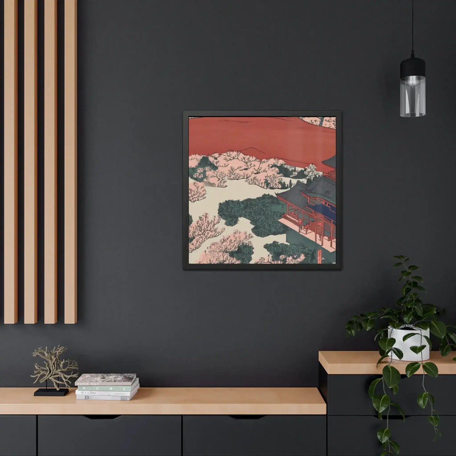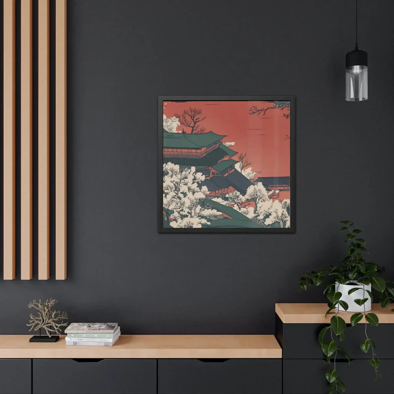 - Hand-crafted wooden frame