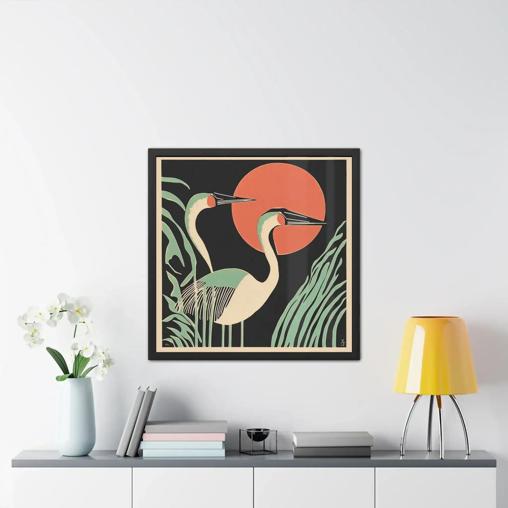 Sunset Cranes - Modern Minimalist Nature Wall Art