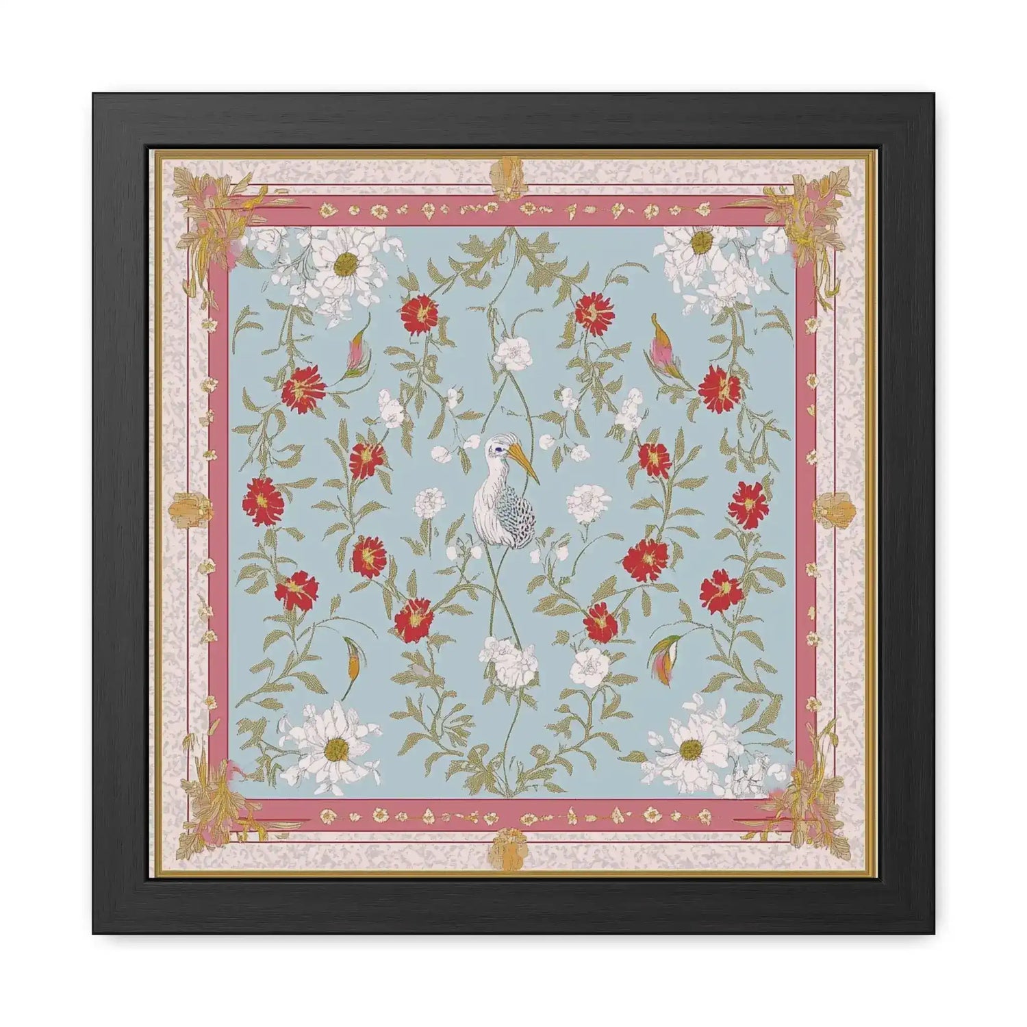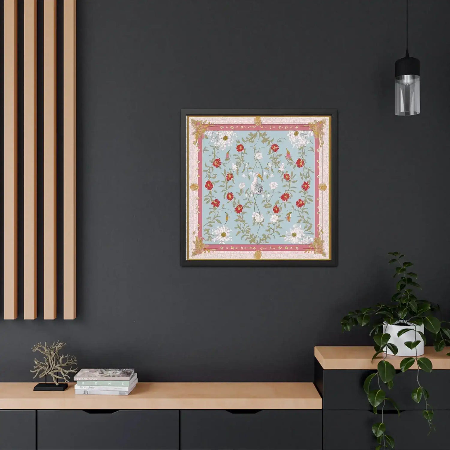 Blue Chinoiserie Flowers and Birds Poster Wall Art