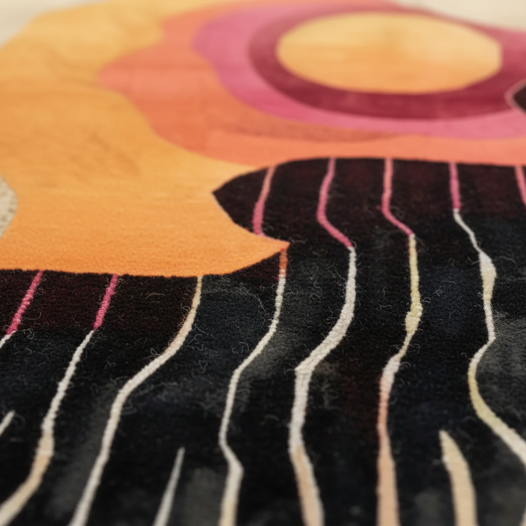 The Abstract Aura Hand-Tufted Rug can make your room look better. They look great with modern art and are very interesting. This rug is soft and will last a long time because it is made of high-quality wool. It's a cool and unique way to make your living room, bedroom, or office look better.