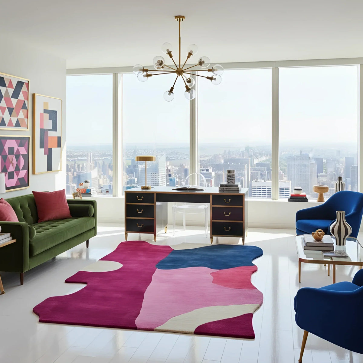 More than decoration, a rug defines a room's spirit. Our hand-tufted wool rugs turn your area into a gallery of maximalist beauty and assertive sophistication by combining lush softness with artistic expression.