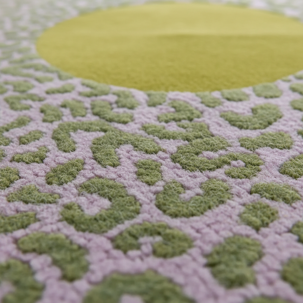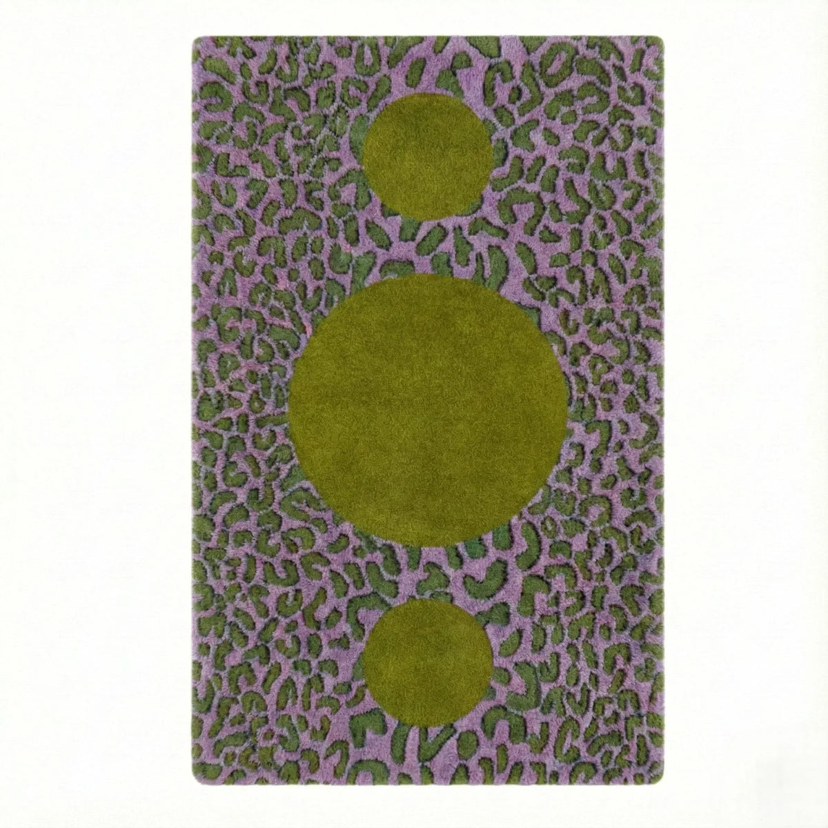 It is made from the best New Zealand wool, and it has an animal print and three moons. It's soft and will last a long time. This rug is one of a kind because it has an animal print and three different moon shapes in different shades of gold. Any room will look better with it.