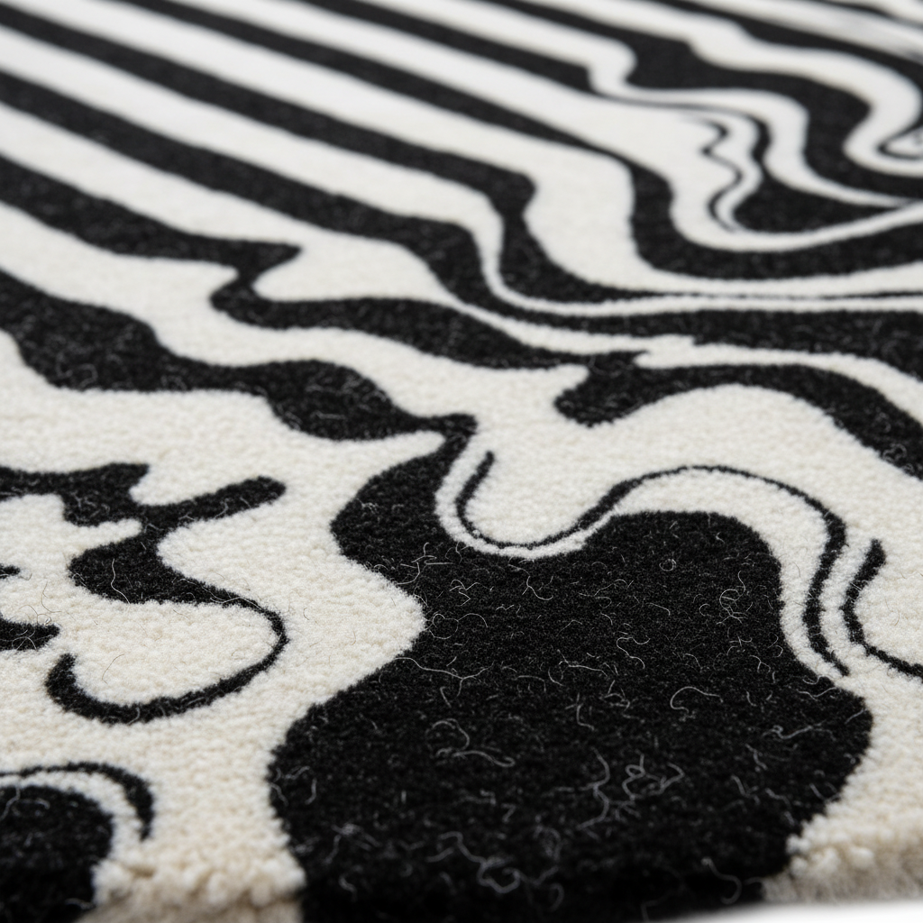 Black and White Melting Hand Tufted Wool Rug