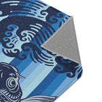 This accent rug features a bold, geometric sunburst design in black, red, and beige. The pattern radiates energy and vibrance, making it a striking addition to any room. The contrasting colors and dynamic shapes create a visually captivating piece that effortlessly enhances modern and artistic home decor.
