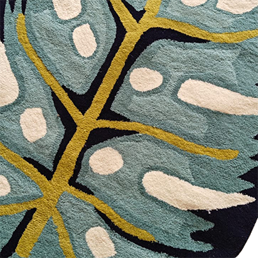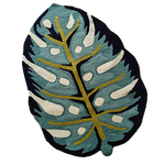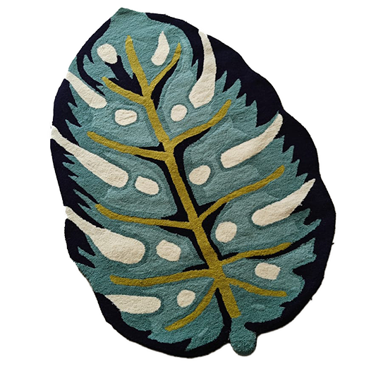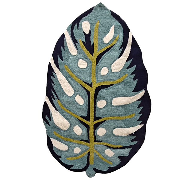 Blue Monstera Leaf Shaped Accent Hand Tufted Wool Rug