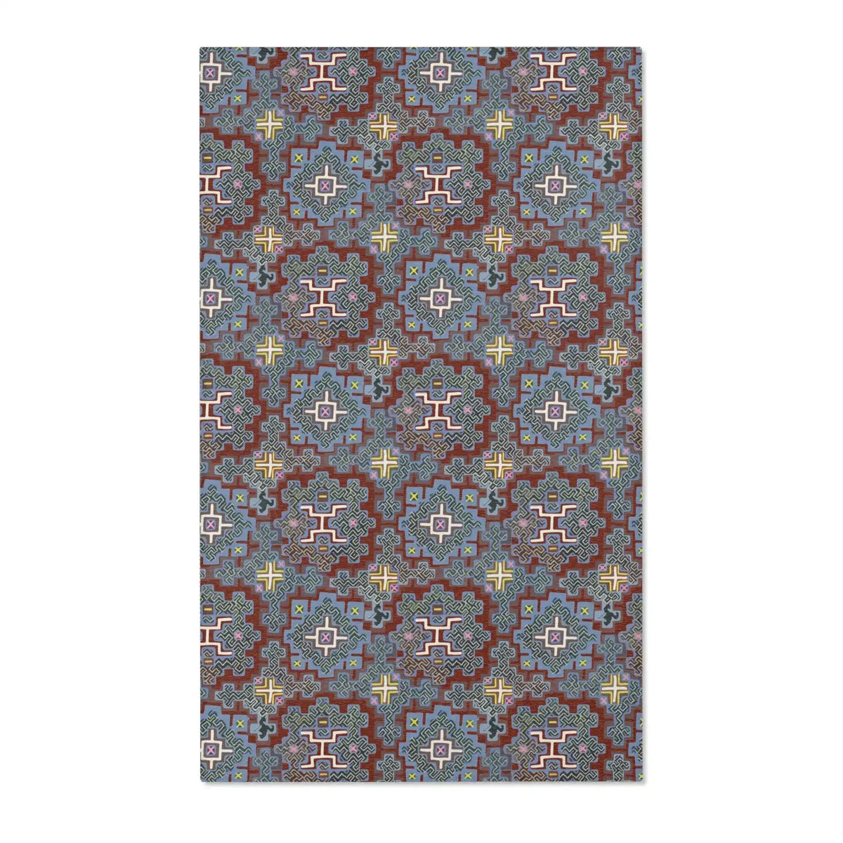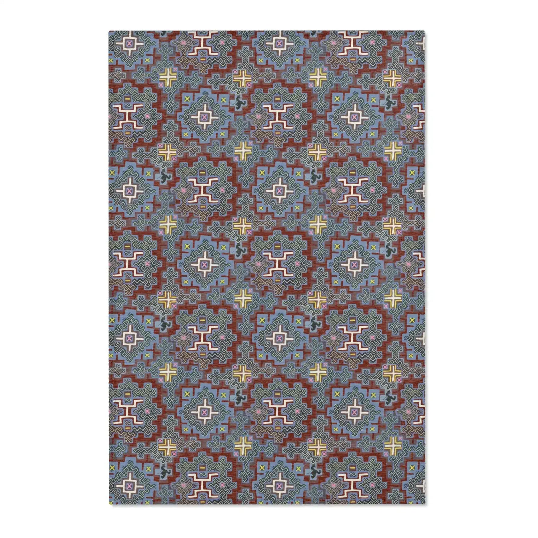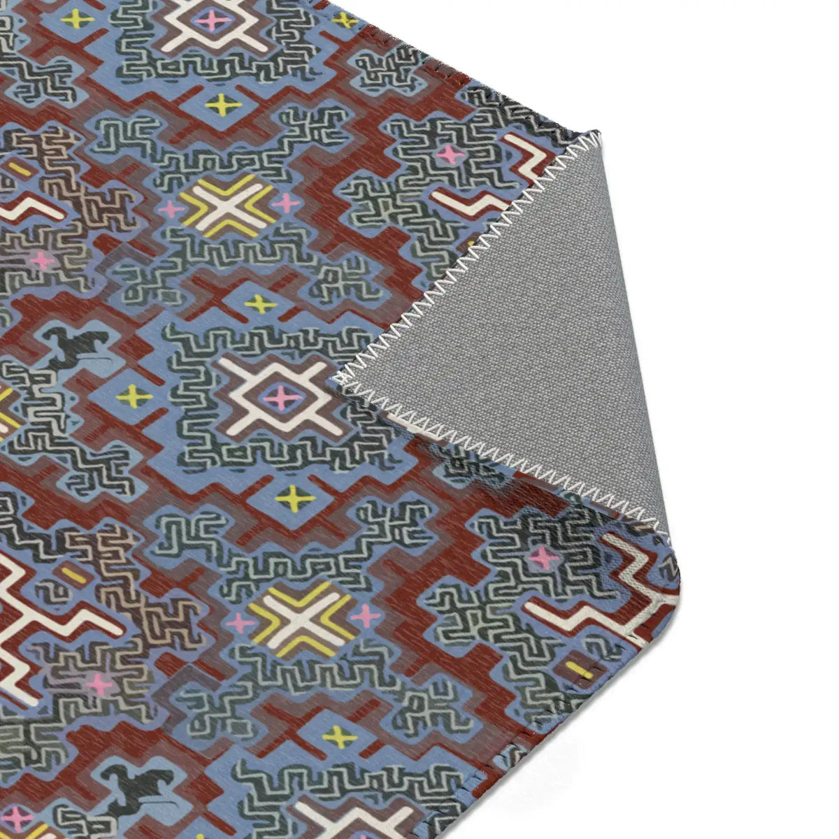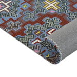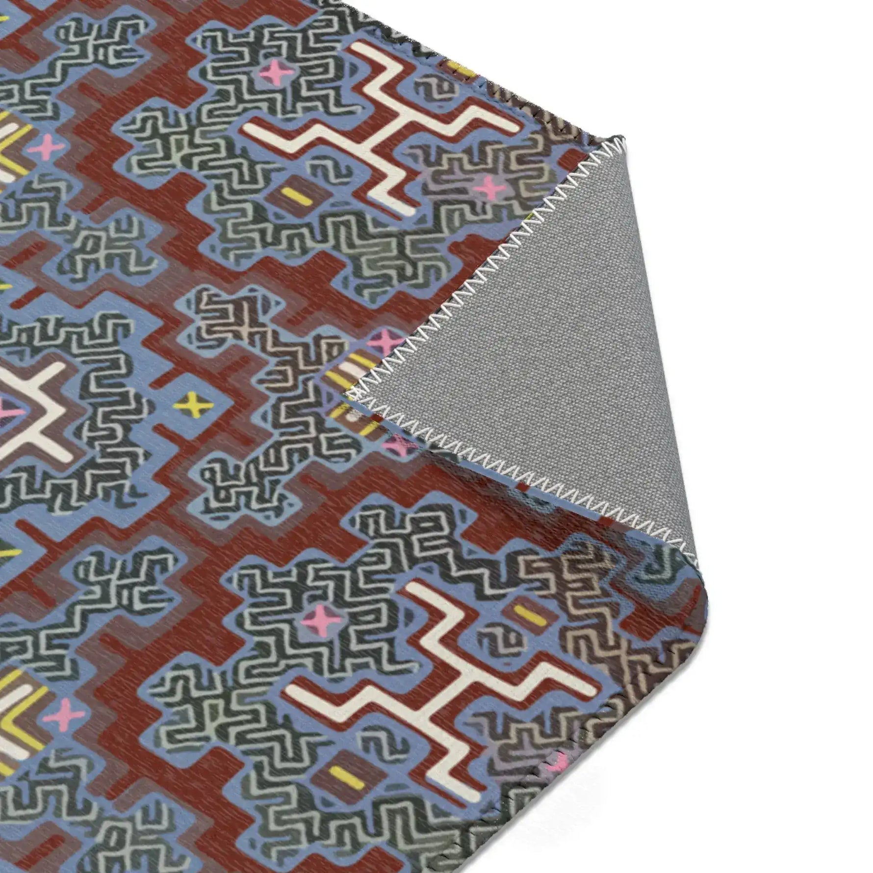 This accent rug features a bold, geometric sunburst design in black, red, and beige. The pattern radiates energy and vibrance, making it a striking addition to any room. The contrasting colors and dynamic shapes create a visually captivating piece that effortlessly enhances modern and artistic home decor.