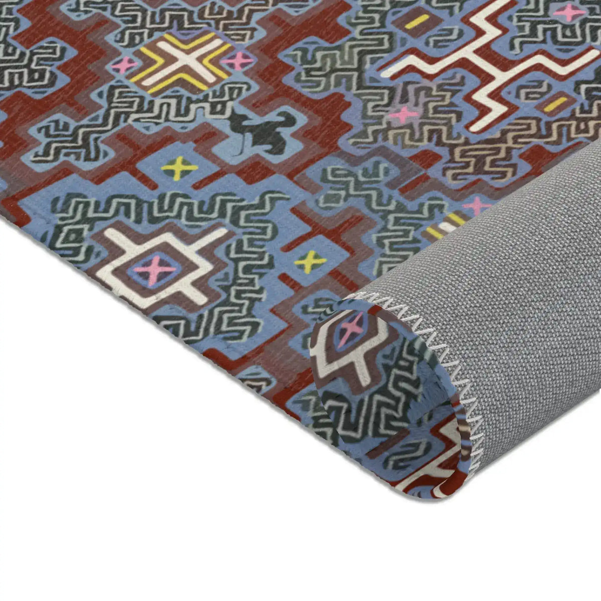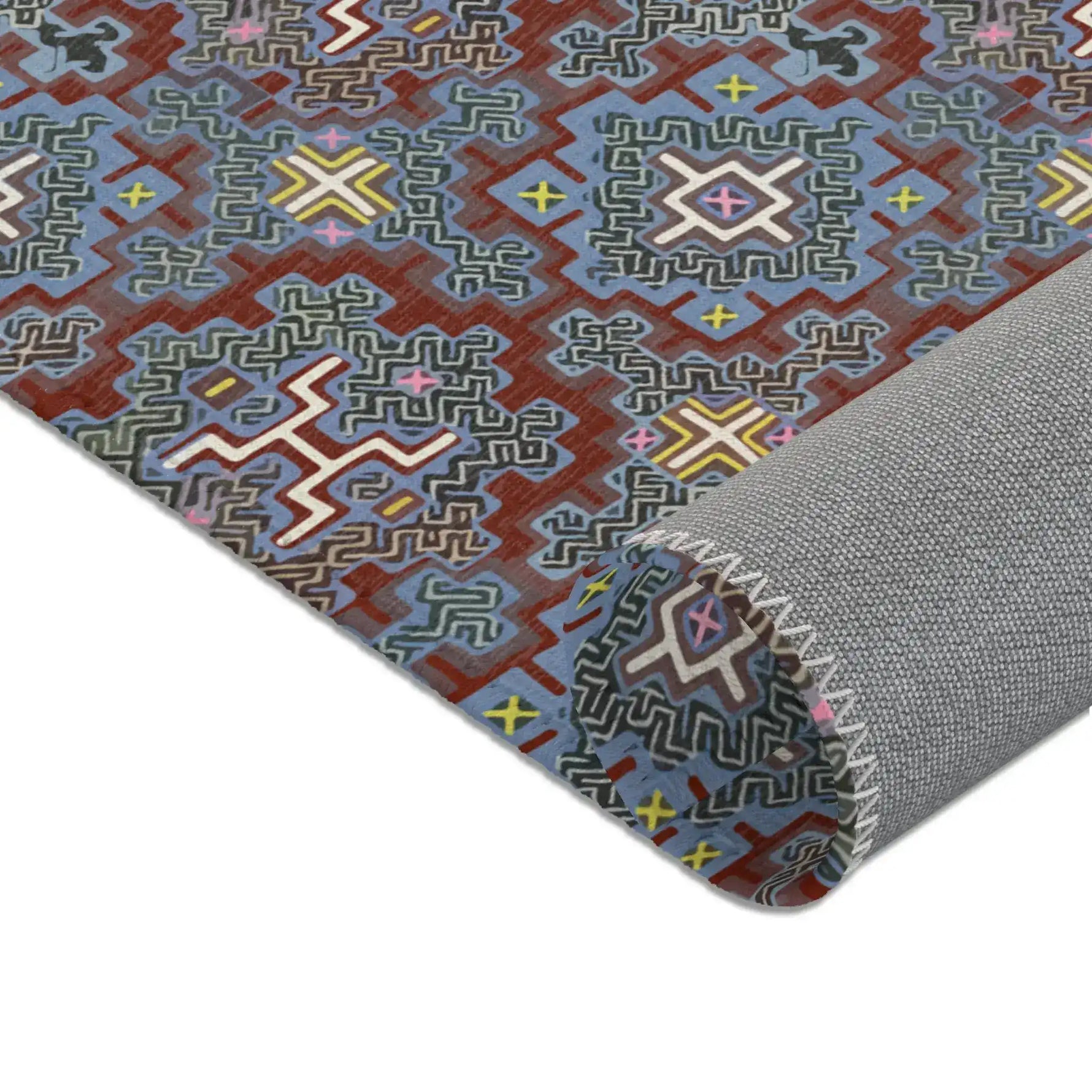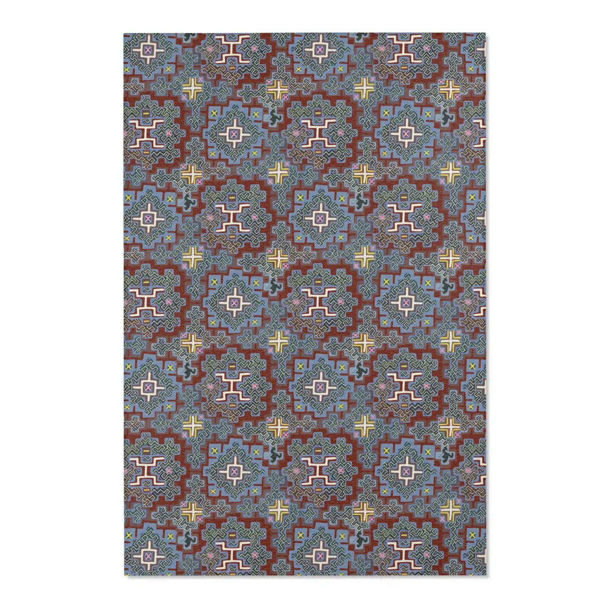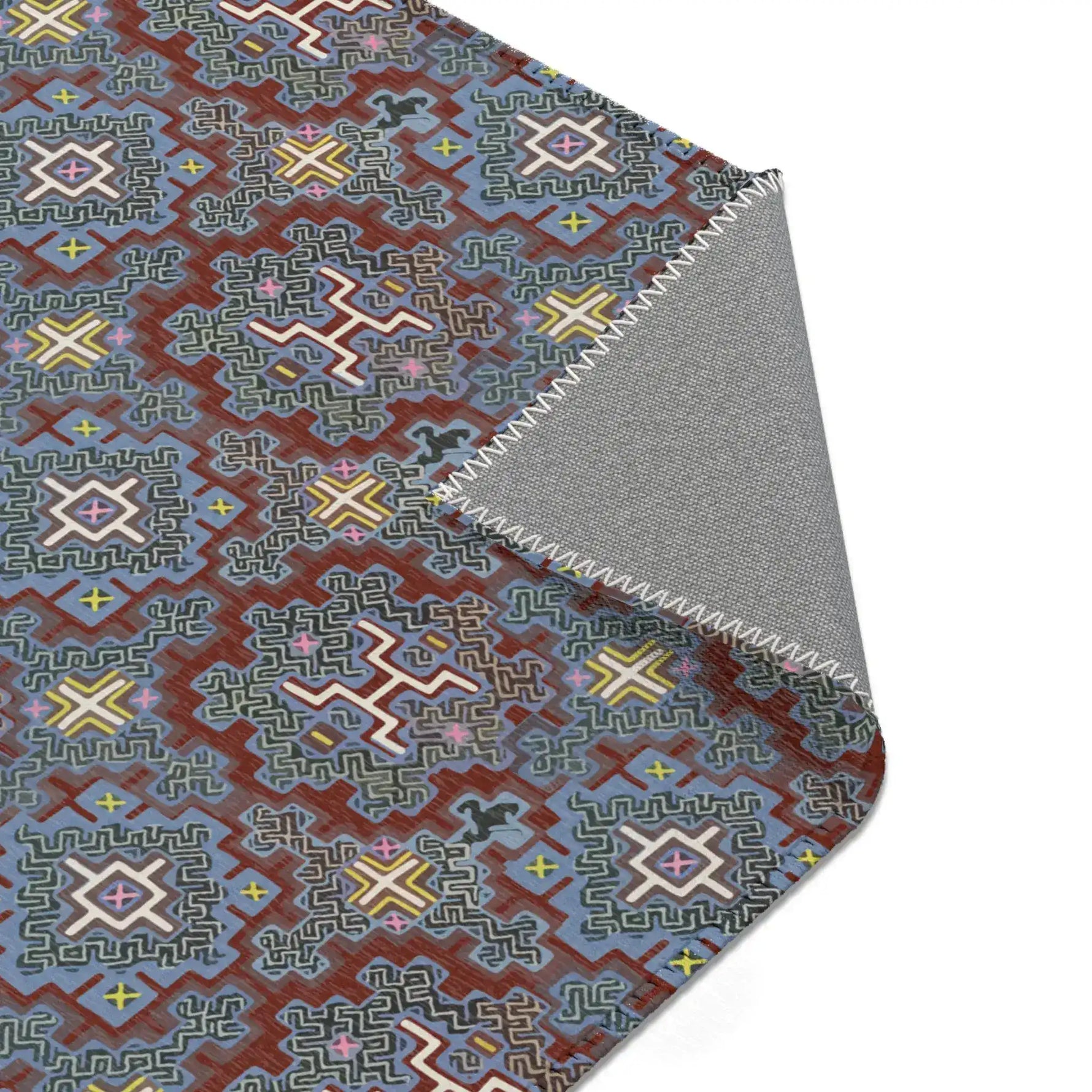 This accent rug features a bold, geometric sunburst design in black, red, and beige. The pattern radiates energy and vibrance, making it a striking addition to any room. The contrasting colors and dynamic shapes create a visually captivating piece that effortlessly enhances modern and artistic home decor.