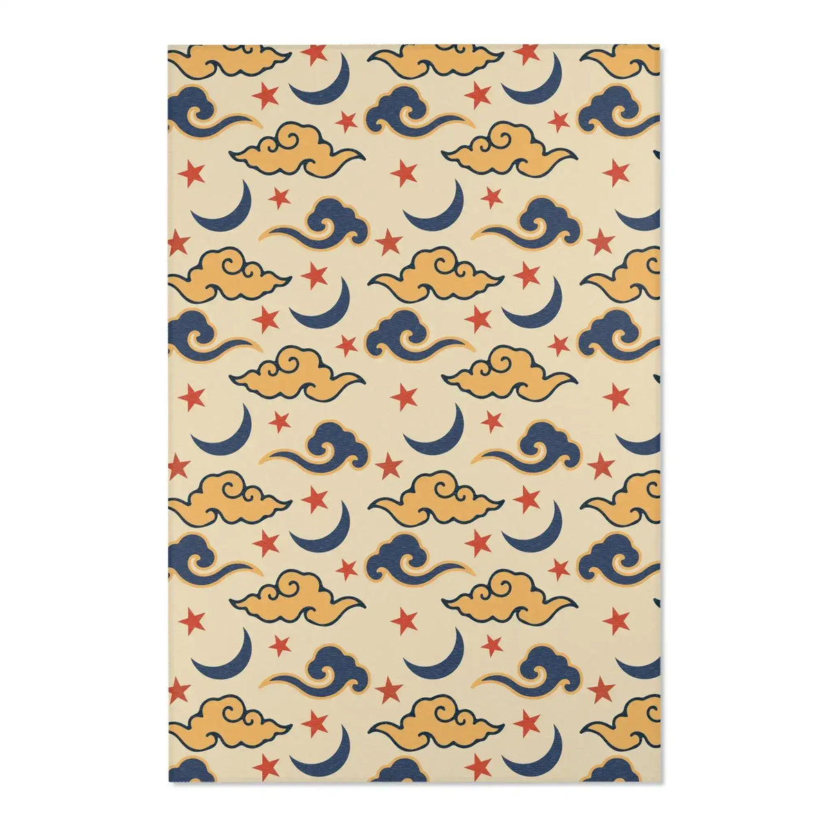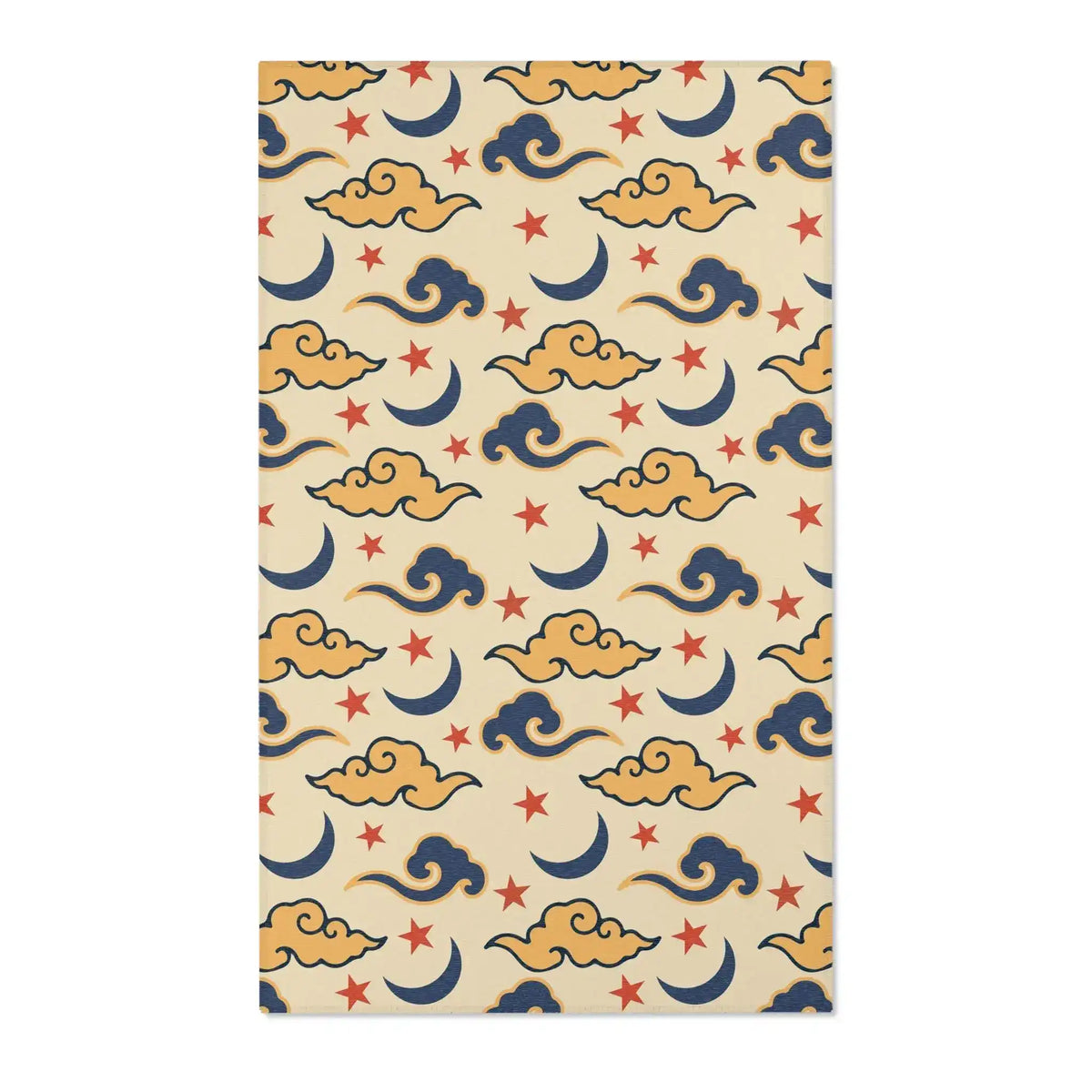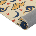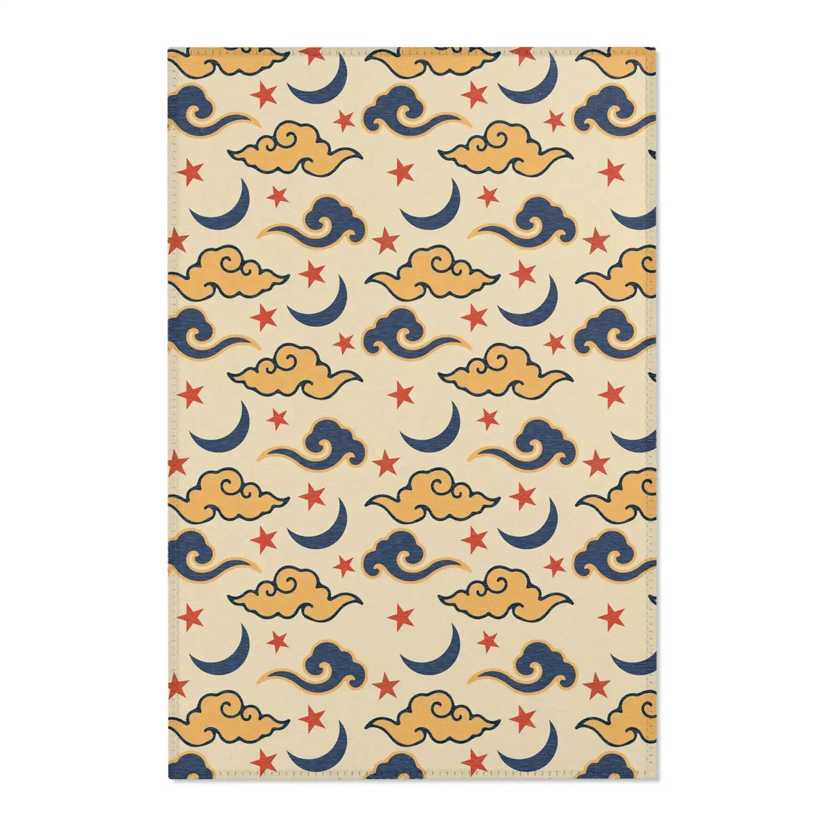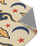 This accent rug features a bold, geometric sunburst design in black, red, and beige. The pattern radiates energy and vibrance, making it a striking addition to any room. The contrasting colors and dynamic shapes create a visually captivating piece that effortlessly enhances modern and artistic home decor.