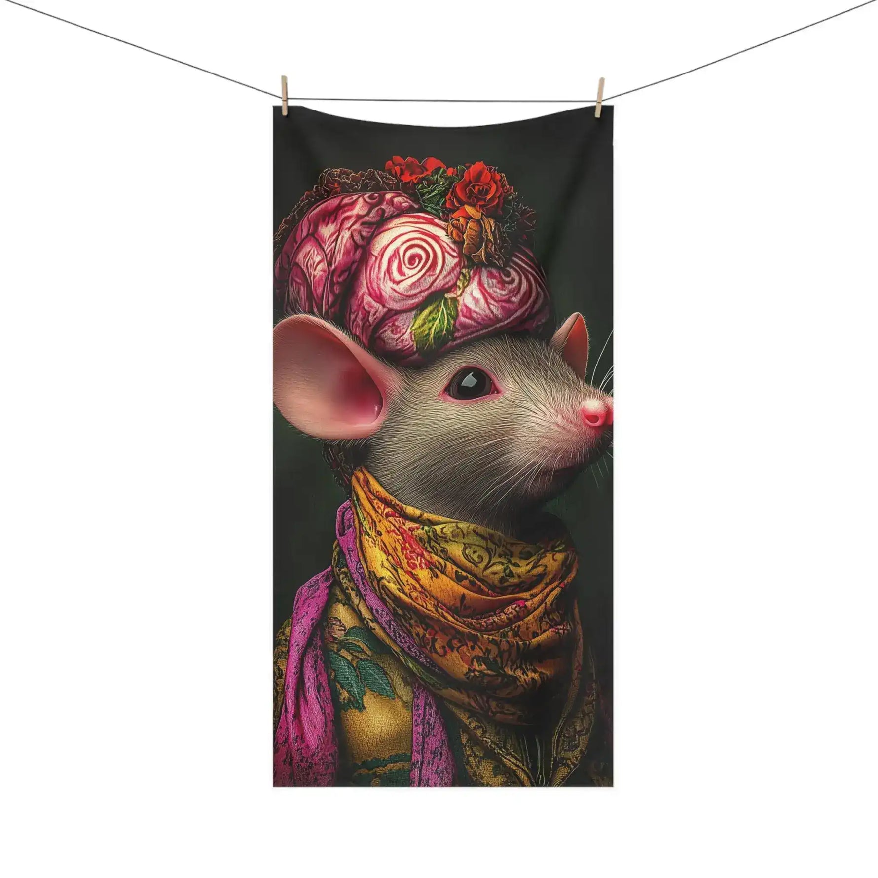 Chic Mouse in Floral Scarf & Headwrap Bath Towel