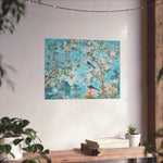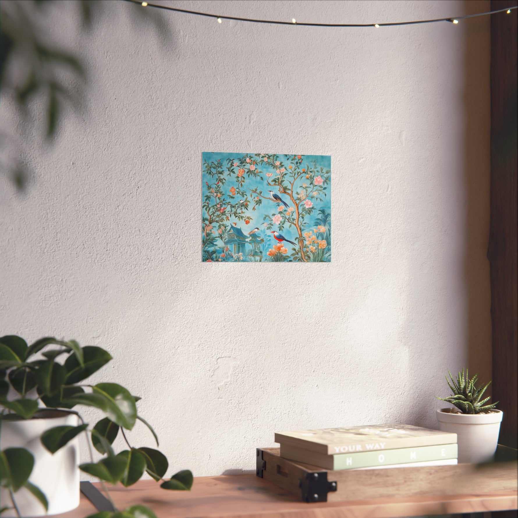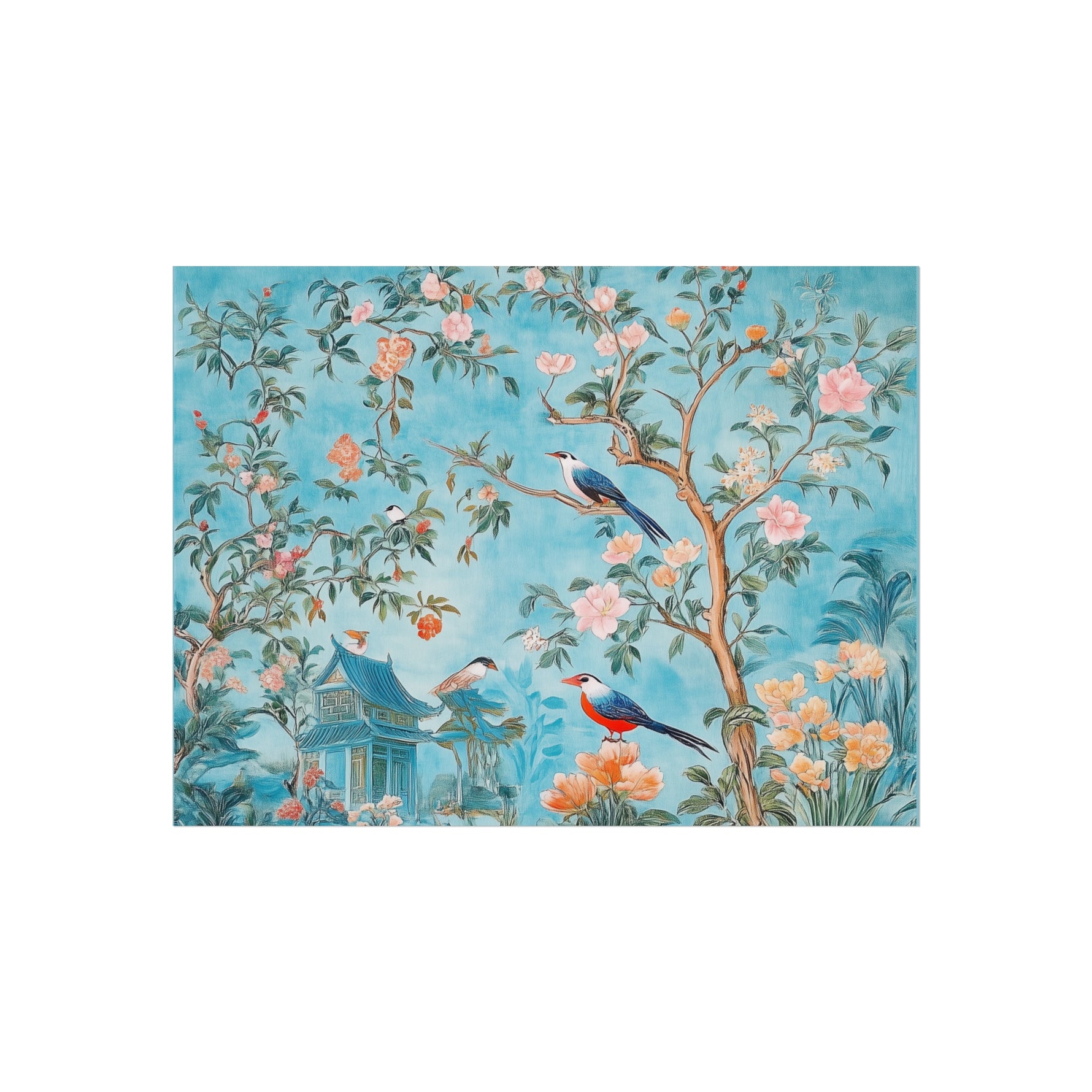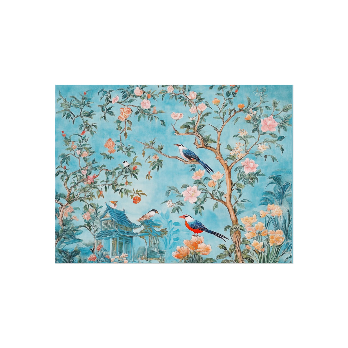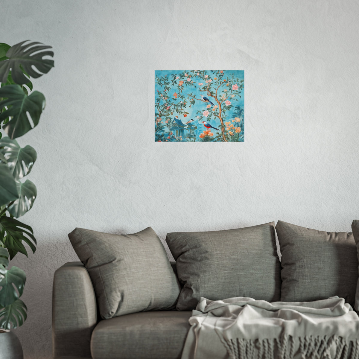 Chinoiserie Birds and Pagoda Fine Art Poster - Blue