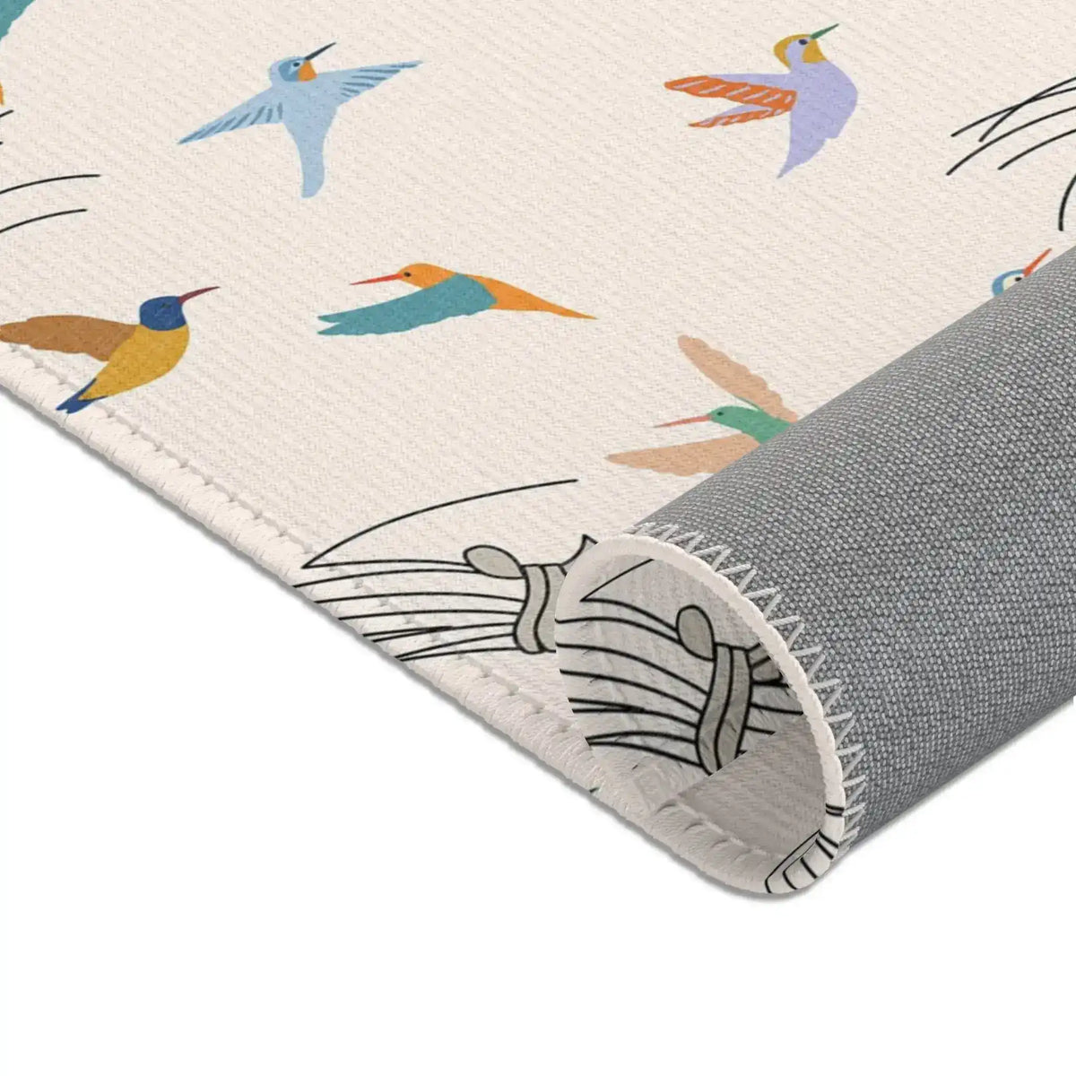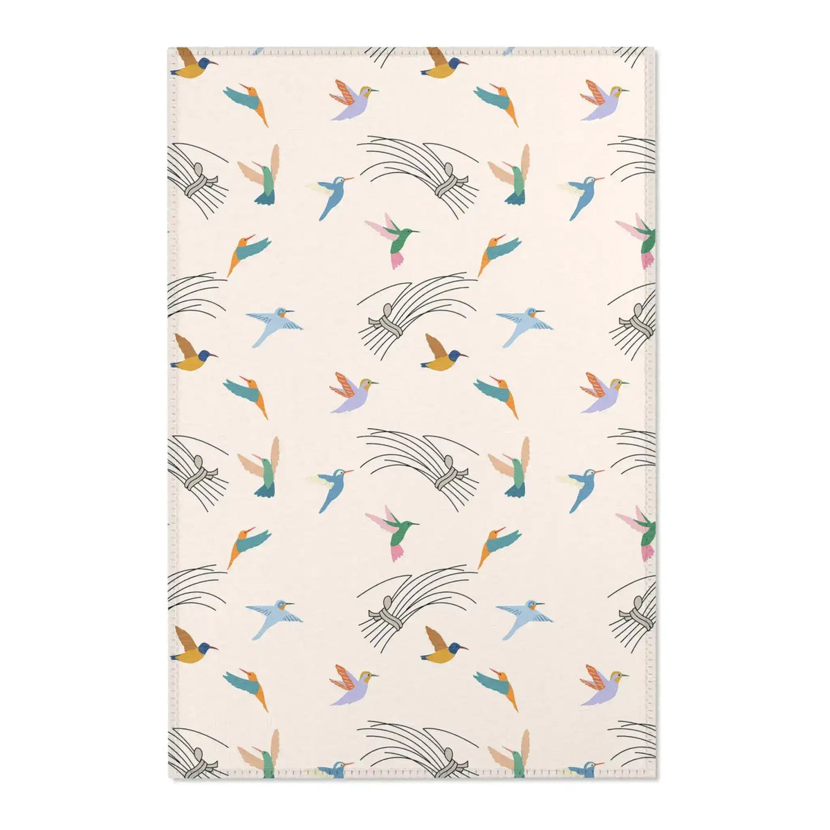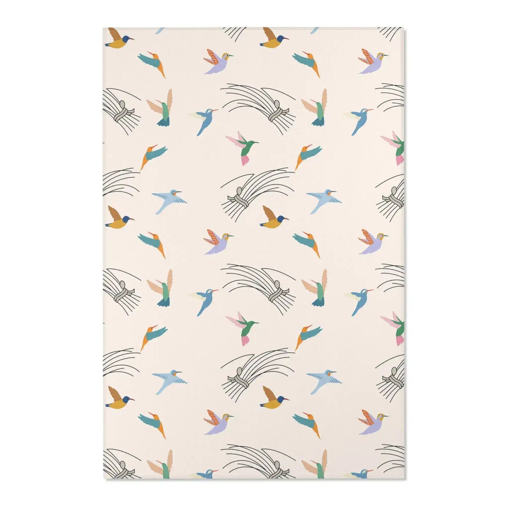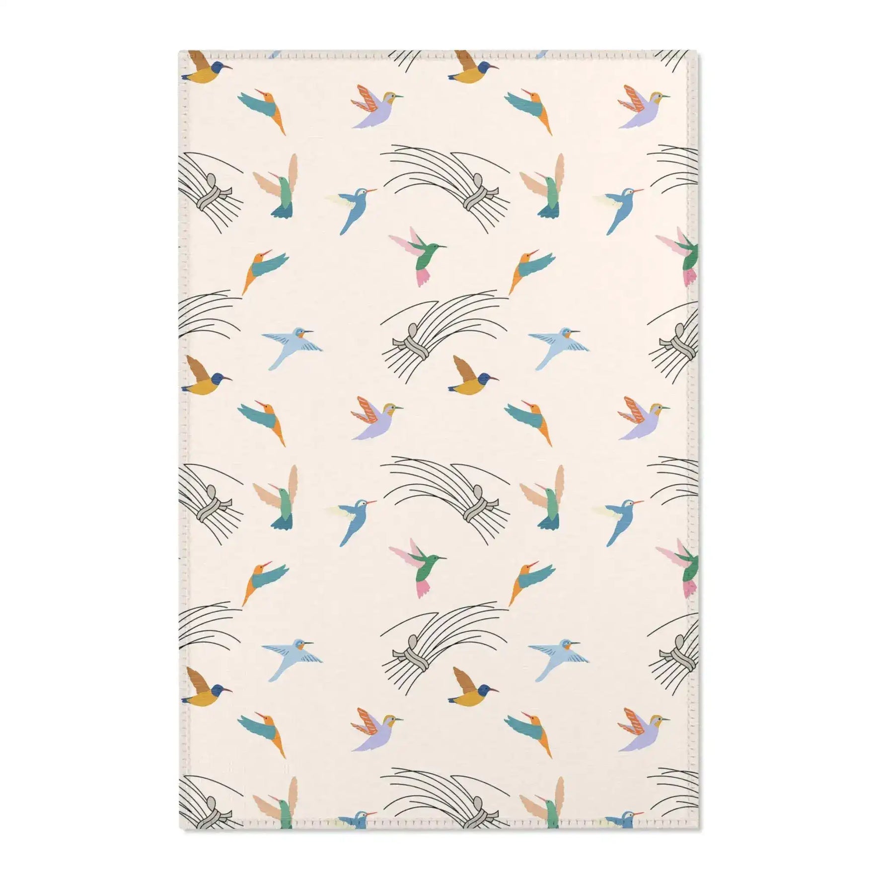 Colorful Hummingbirds on Cream Accent Rug