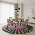 The Contemporary Green and Pink Ray Round Hand-Tufted Wool Rug will make your room look better. It combines modern style with traditional handicrafts. The bright shades of green and pink, carefully tufted into a beautiful ray design, will fill your room with color. This round work of art, made from soft wool, gives any room a touch of class.