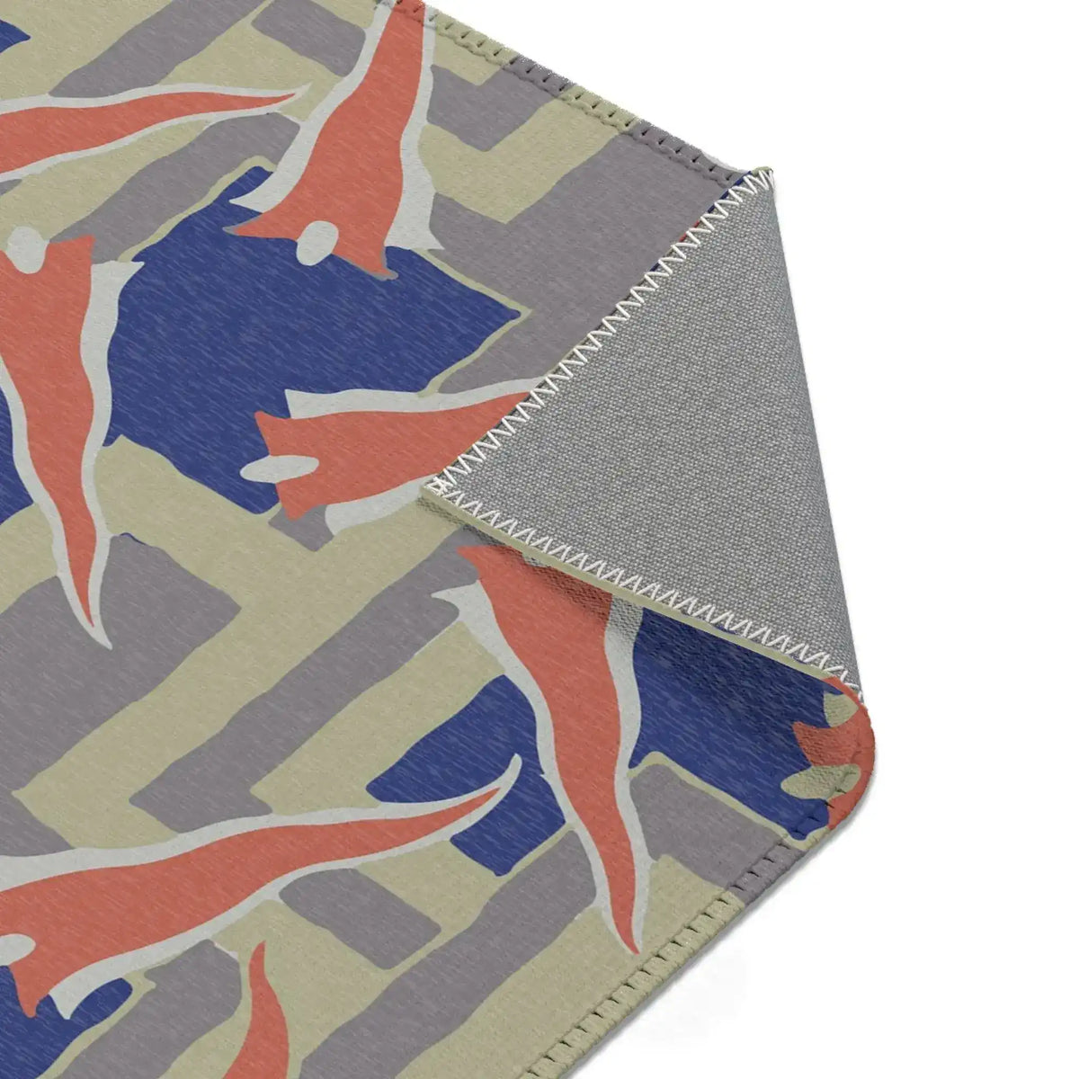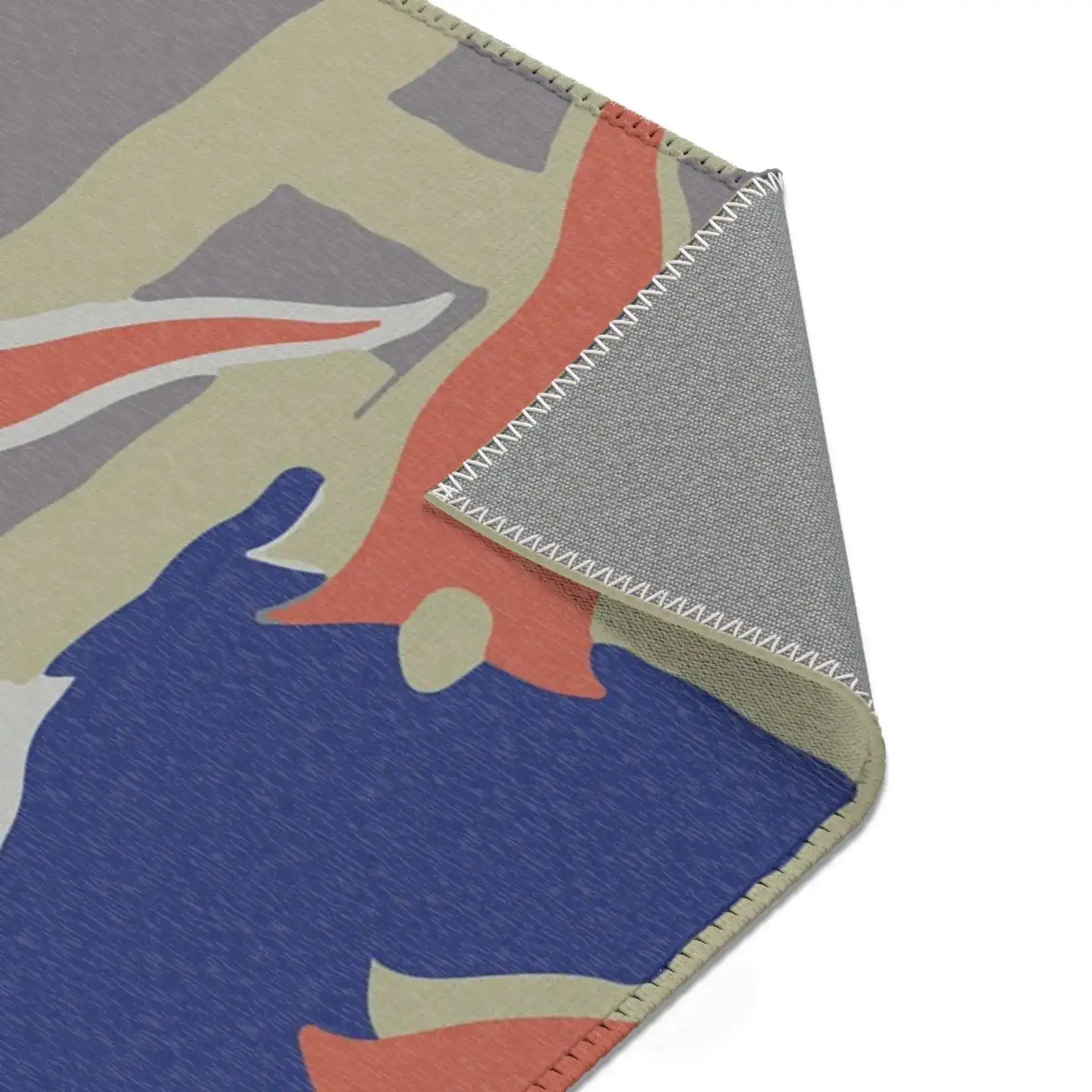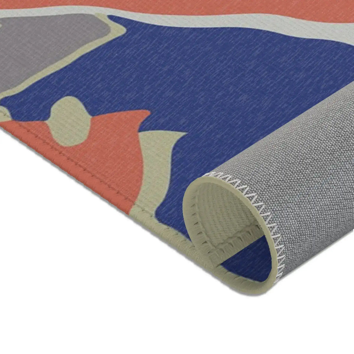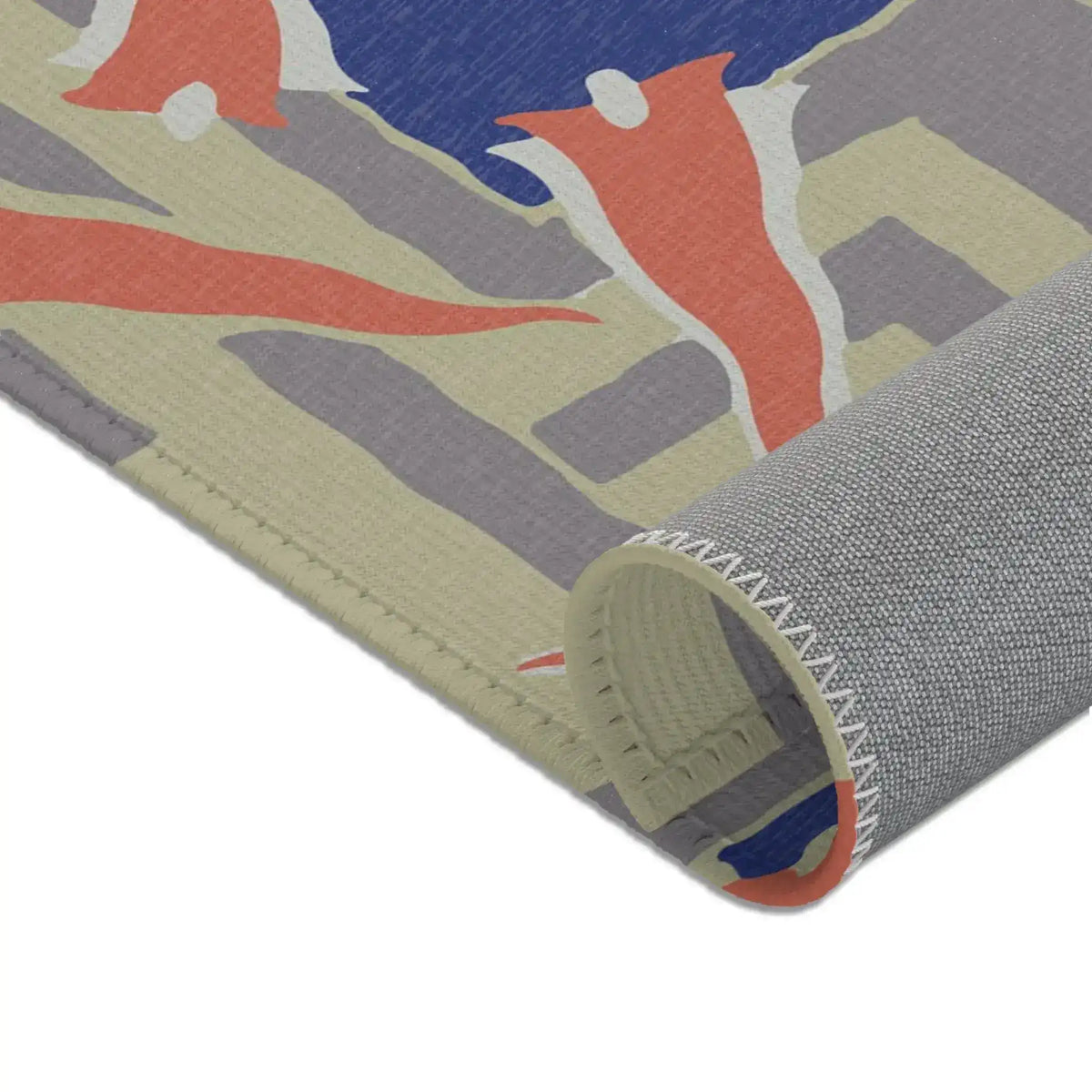 This accent rug features a bold, geometric sunburst design in black, red, and beige. The pattern radiates energy and vibrance, making it a striking addition to any room. The contrasting colors and dynamic shapes create a visually captivating piece that effortlessly enhances modern and artistic home decor.