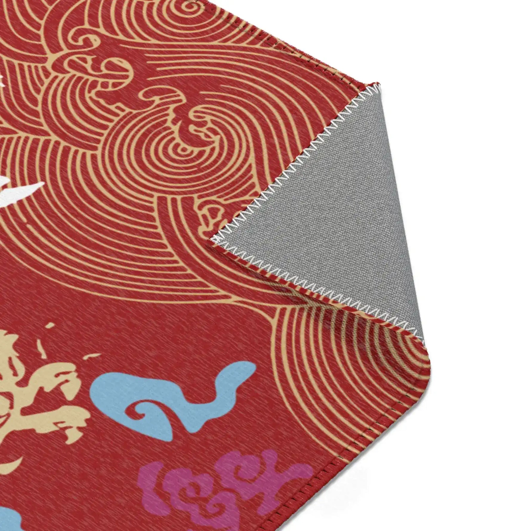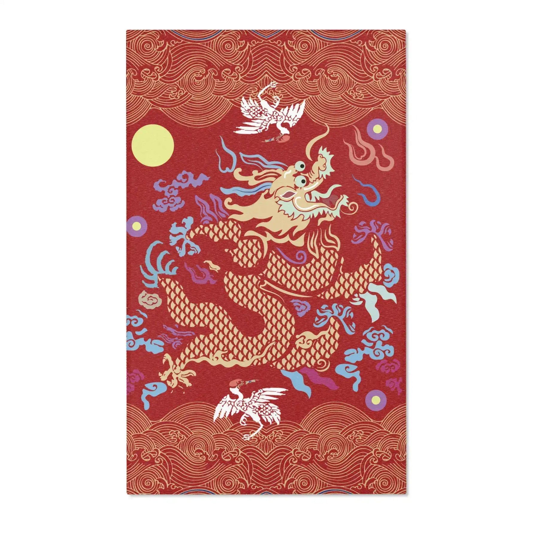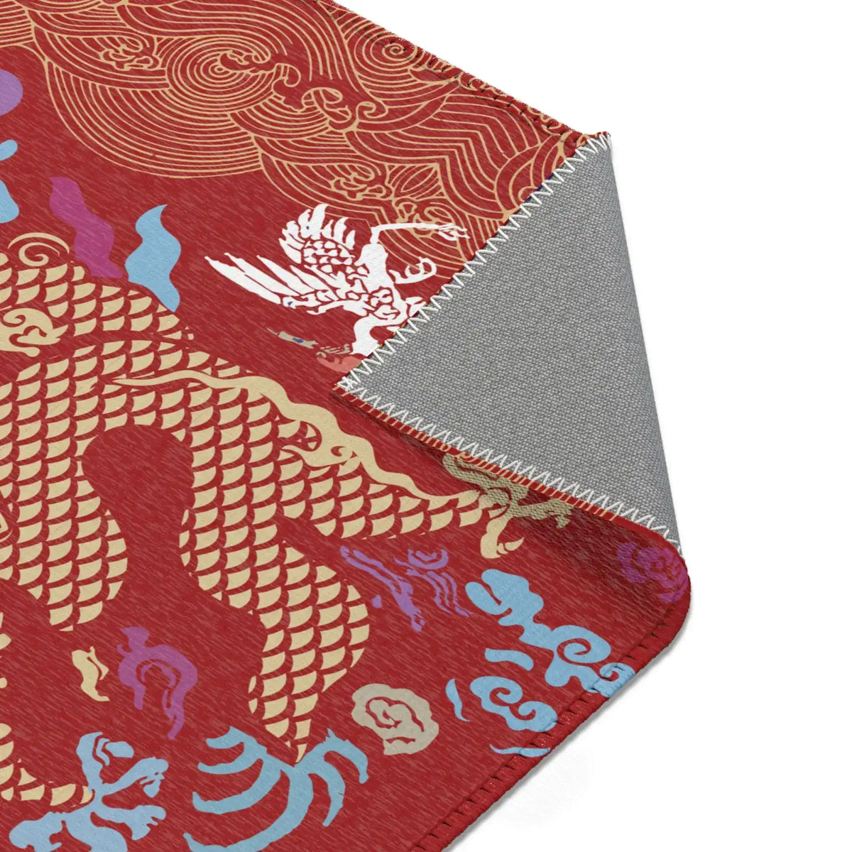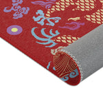You can bring the bold style and energy of the Crimson Celestial Dragon Accent Rug into your own home. Bright red dragons and stars on it give it a strong and fresh look. It's soft and long-lasting, and you can use it to draw attention to the main point of any room.