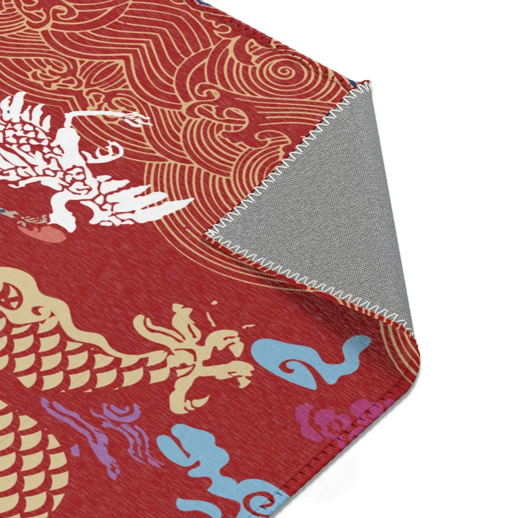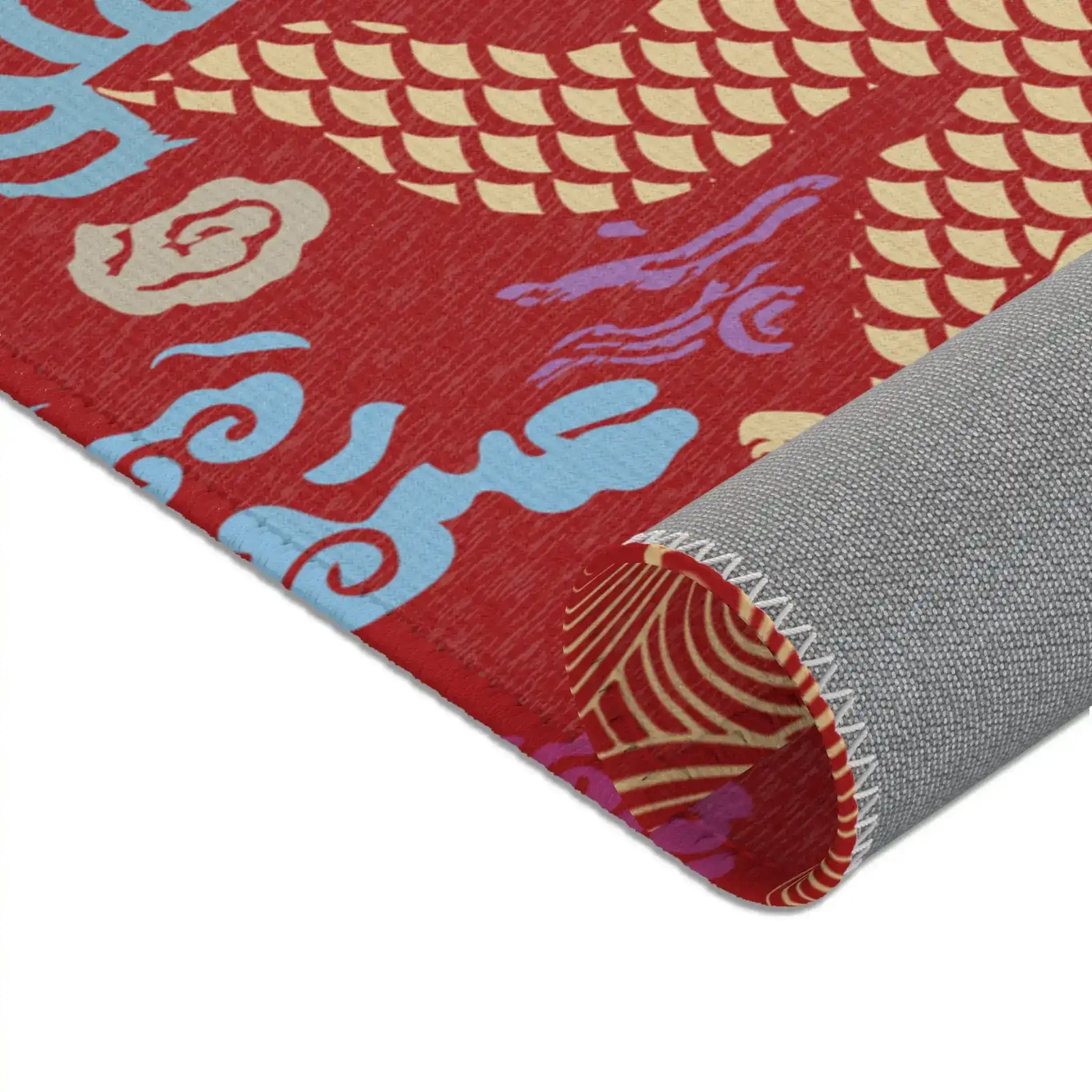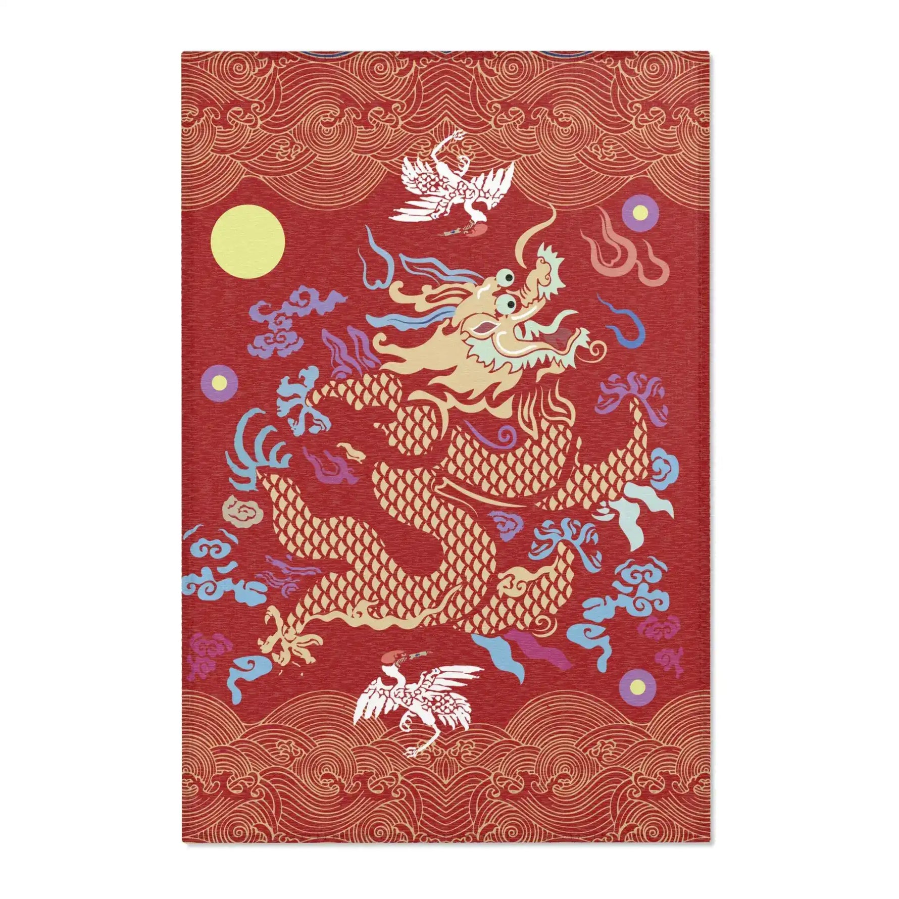 You can bring the bold style and energy of the Crimson Celestial Dragon Accent Rug into your own home. Bright red dragons and stars on it give it a strong and fresh look. It's soft and long-lasting, and you can use it to draw attention to the main point of any room.