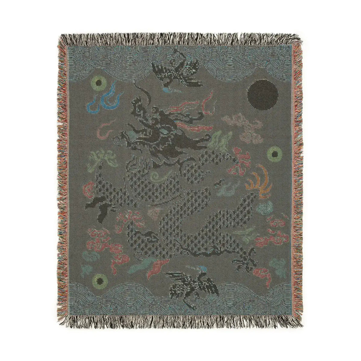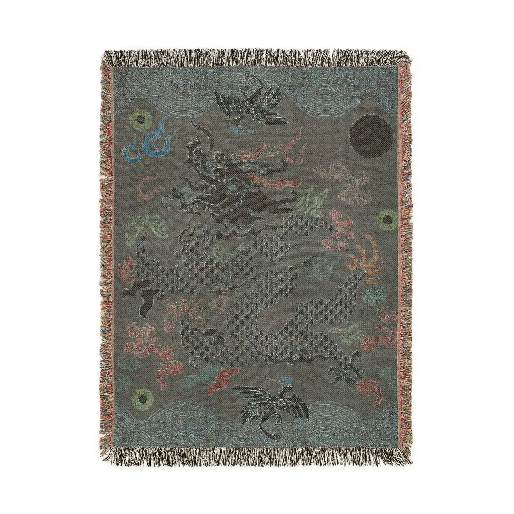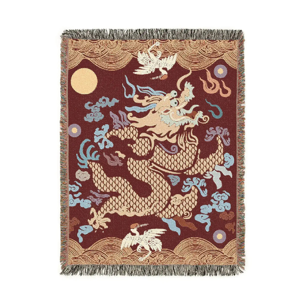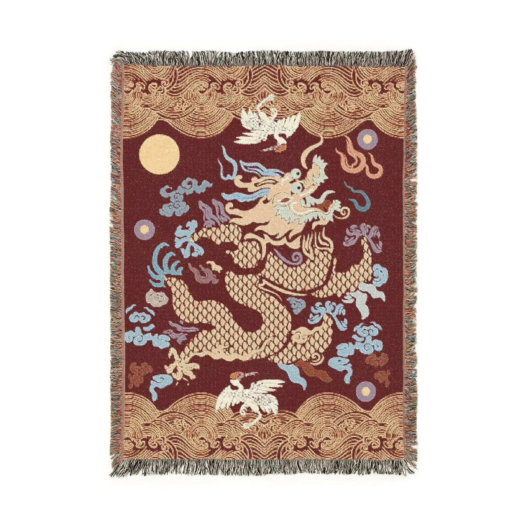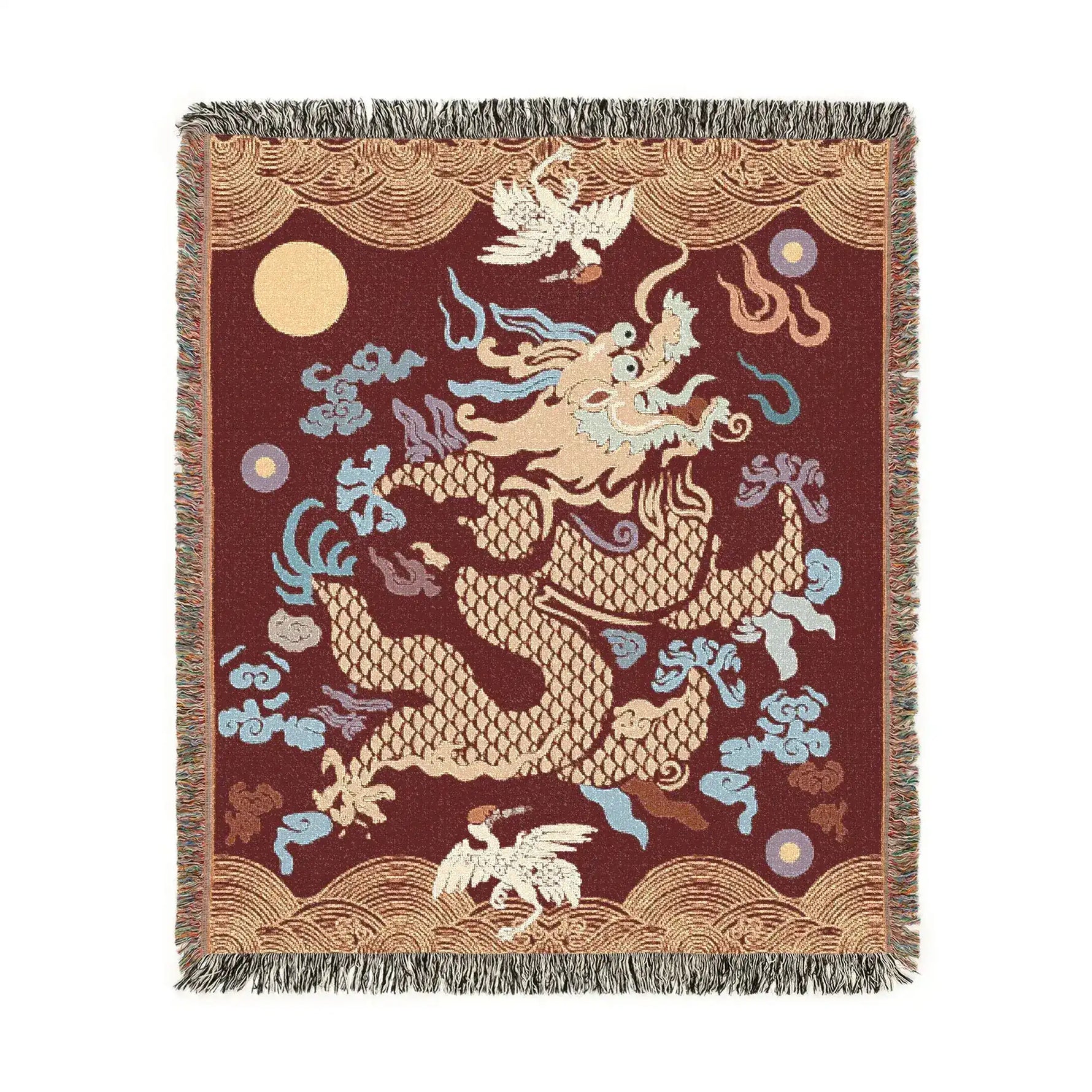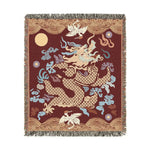 Crimson Celestial Dragon Woven Blanket