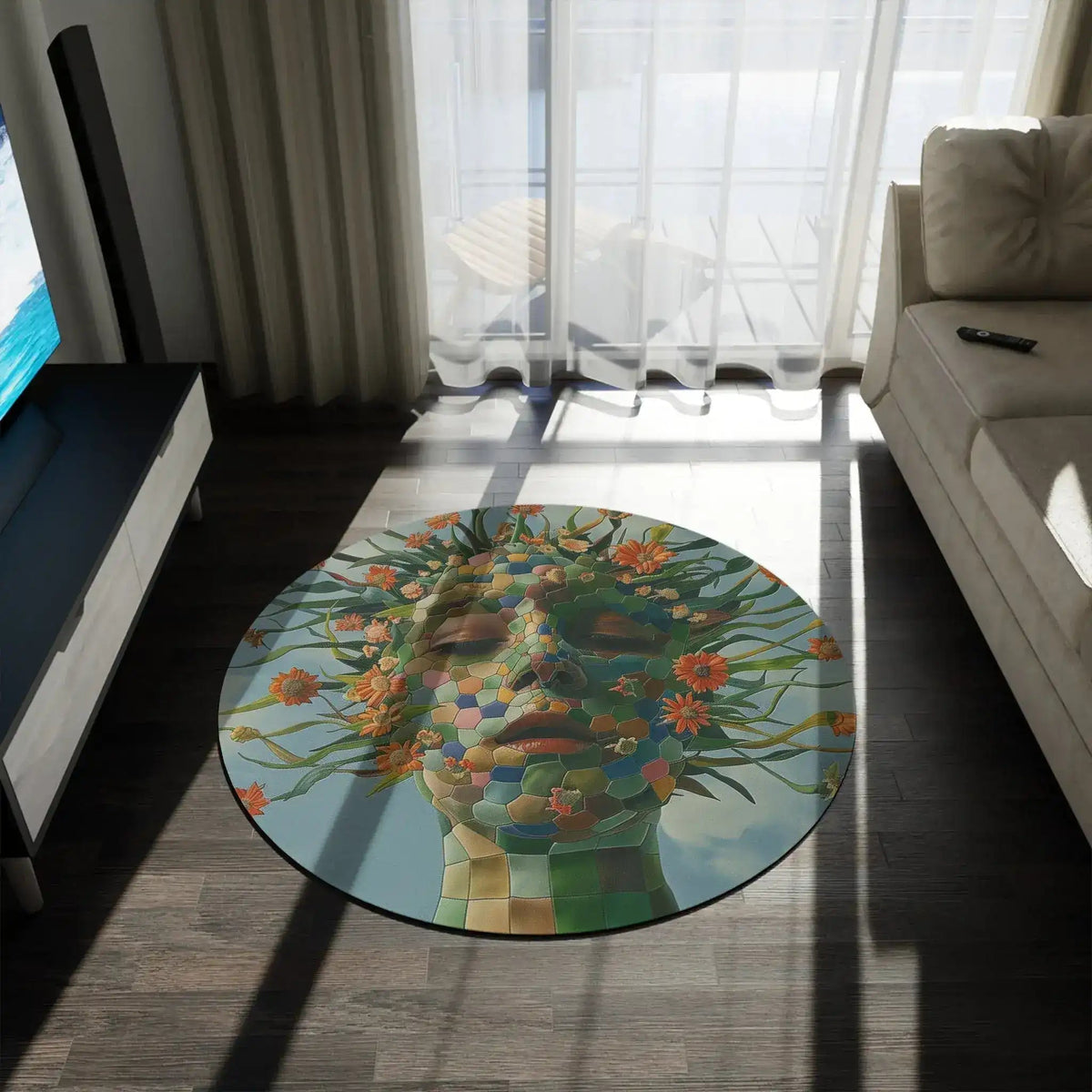 Floral Abstract Portrait Round Rug